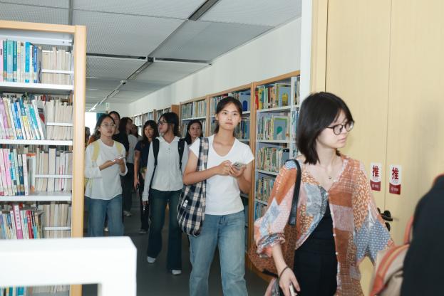 师生们首先走进滴水湖国际软件学院园区。作为临港软件园的首发核心项目、“滴水湖AI创新港” 的关键承载平台,滴水湖国际软件学院秉持“把办学前移到急需产业一线”的办学理念,聚焦人工智能、大数据、软件工程等前沿领域,搭建了集教学实训、科研创新、企业孵化于一体的复合型空间。这里不仅将人才培养直接扎根产业沃土,推动科研成果在改革一线快速转化,更实现了学院与园区“产城融合、科教融汇”的双向赋能。在辅导员老师的带领下,师生们逐层参观了学院的基本教学空间、图书馆、健康中心、科研空间等多功能空间,直观感受到了其“开放、交流”的设计理念。
