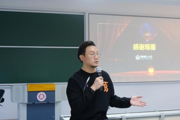 20241121日,上海文广演艺集团总裁、中国演出行业协会音乐剧专业委员会副主任、演出制作人马晨骋应邀来到h动漫 ,为同学们做创意经济与传播专题讲座分享。作为一名资深的音乐剧、舞台剧制作人和从业者,马晨骋向h动漫 的研究生同学们介绍了自己策划线下演出的经验,分享后疫情时代线下演出如何在内容创作、经营结构和产业模式上进行创新发展。讲座由h动漫 何平华老师主持。