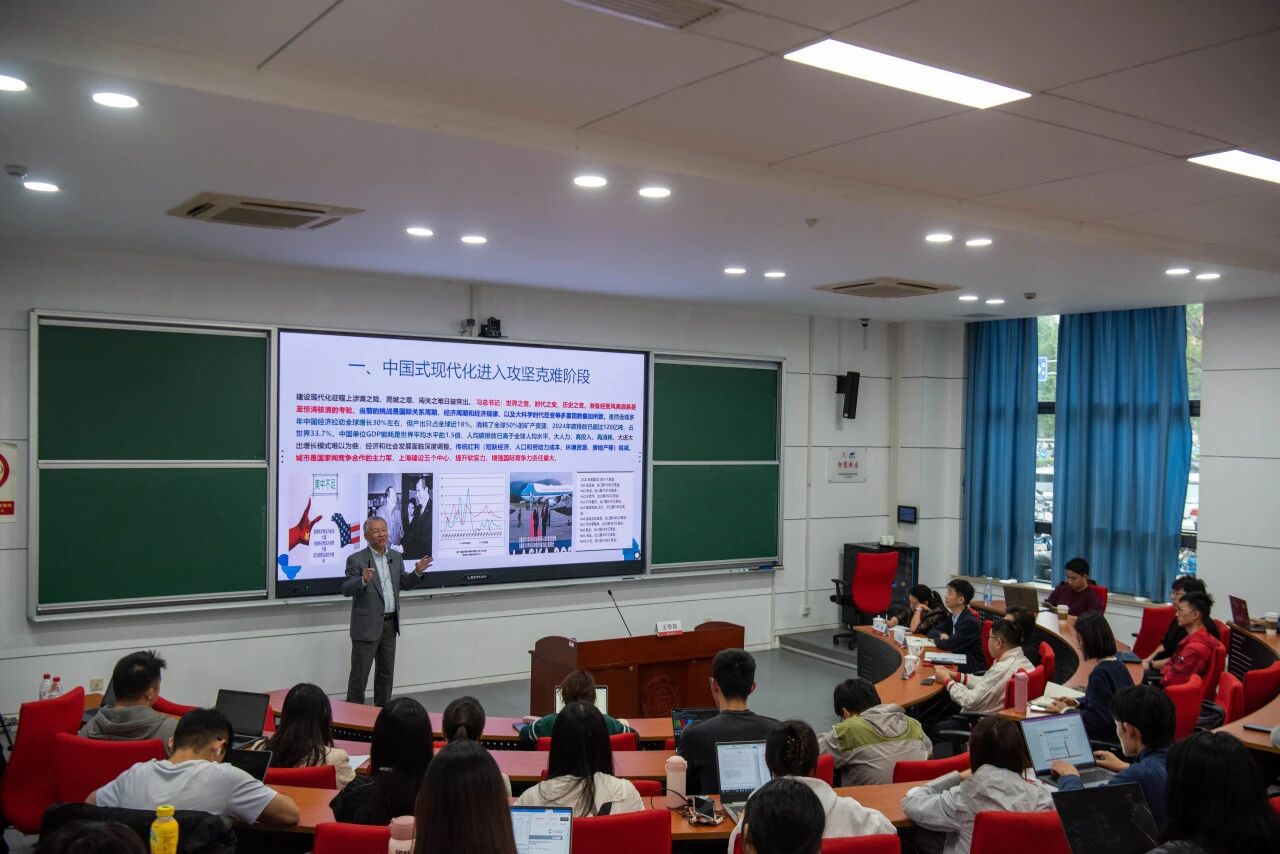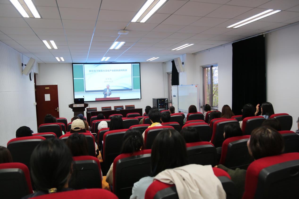 10月21日下午,由中共上海市委宣传部、上海交通大学共同主办的2025年度“新时代的中国”国情教育系列讲座第二讲,在上海交通大学陈瑞球楼举行。本场讲座由上海市宏观经济学会会长、上海市政府重大行政决策咨询论证专家王思政主讲。王思政围绕“新形势下发展大文化产业的挑战和机遇”这一主题,深入分析了当前发展大文化产业所要应对的形势以及可借鉴的优秀案例,并与现场师生们交流互动。讲座由上海交通大学党委常委、宣传部部长于朝阳主持。h动漫 2025级硕士生在h动漫 212报告厅全程聆听本次讲座,同步参与国情教育讲座。