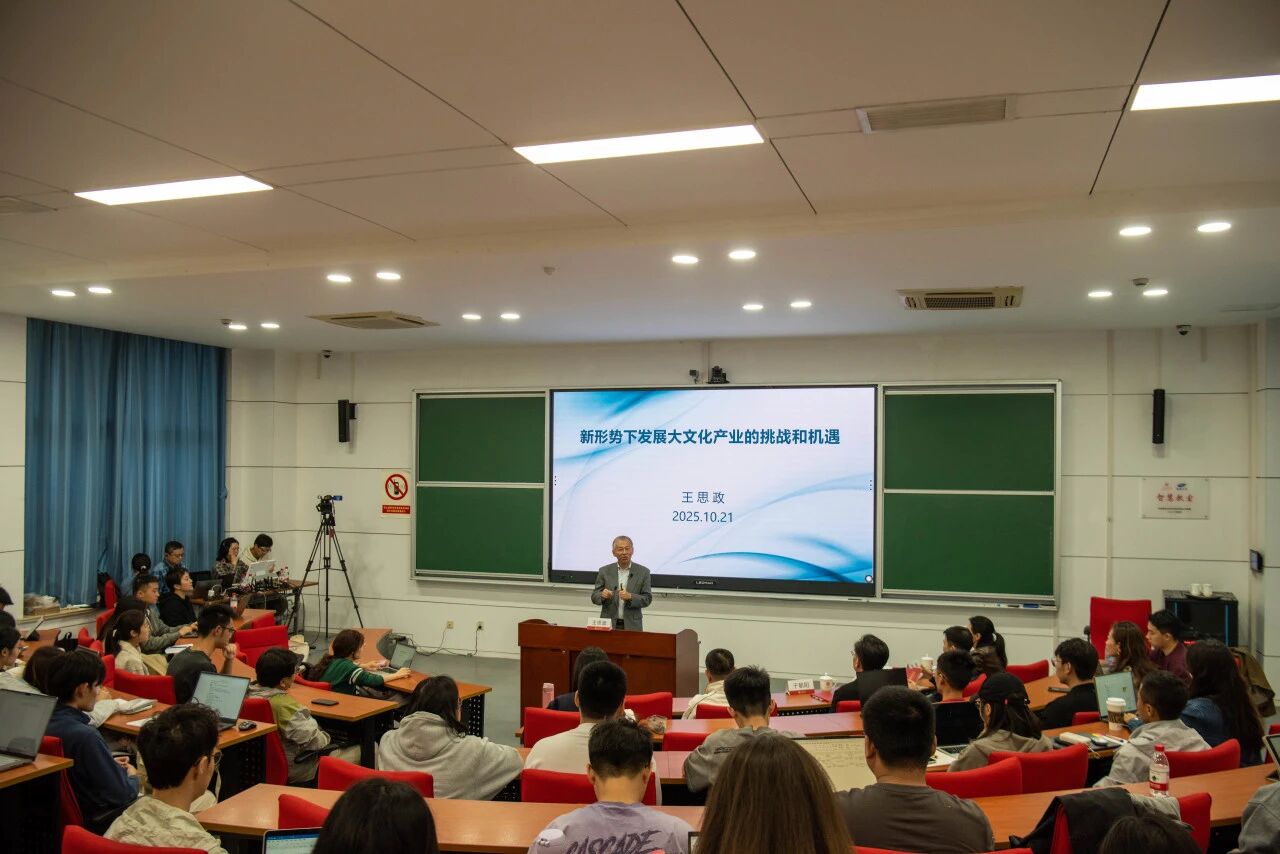 当前,我国正处在“十四五”收官、为“十五五”规划奠定基础的重要时期,时代呼唤文化的创新力量。王思政的讲座极大地启迪了青年学子。他以生动的讲述与充实的案例,为大家带来一场思想盛宴,现场掌声热烈。在随后的提问互动环节,围绕“如何实现文化安全与对外传播的有机统一”“如何构建协同发展的文化经济圈”以及“中国媒体如何突破西方话语壁垒”等问题,王思政一一作出细致解答,并勉励青年学子要坚持文化自信,同时保持开放心态,推动文化在创新中持续发展。
