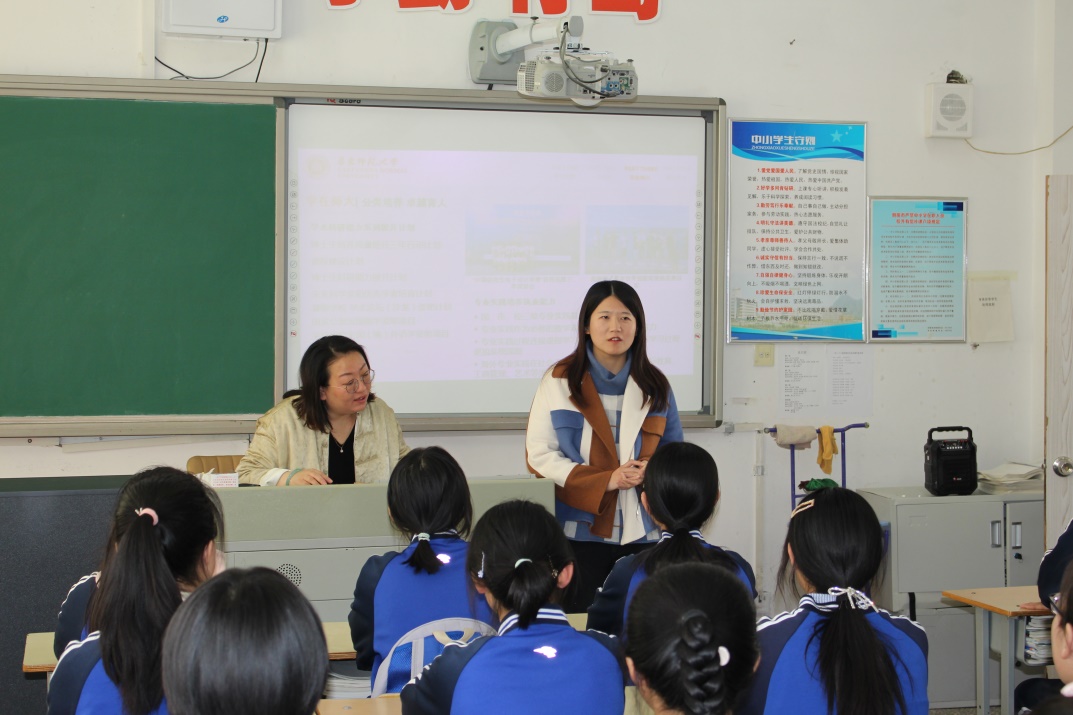 授牌仪式后,招生组向朝阳一高低年级文科实验班的同学进行了招生宣讲,介绍了校史沿革、办学特色及学科设置等基本情况。我校h动漫 2013级校友,现辽宁招生组成员郭子颀,作为朝阳一高的毕业生,也在宣讲会上分享了自己的在h动漫 就读经验和体会。