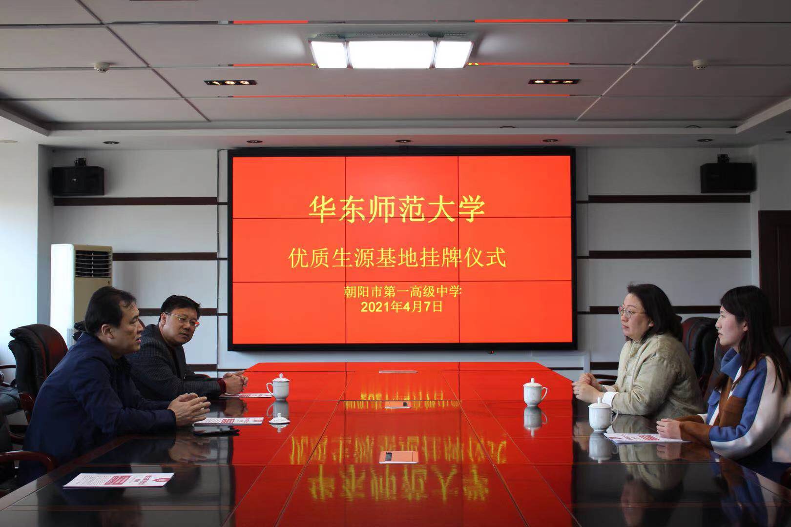 朝阳市第一高级中学,始建于1904年,是辽宁省首批示范性高中和重点高中。4月8日,招生组走访了辽宁省朝阳市第一高级中学,并对该高中授牌优质生源基地。朝阳市第一高级中学校长李铁松、副校长张景刚、教导主任时杰出席了授牌仪式。