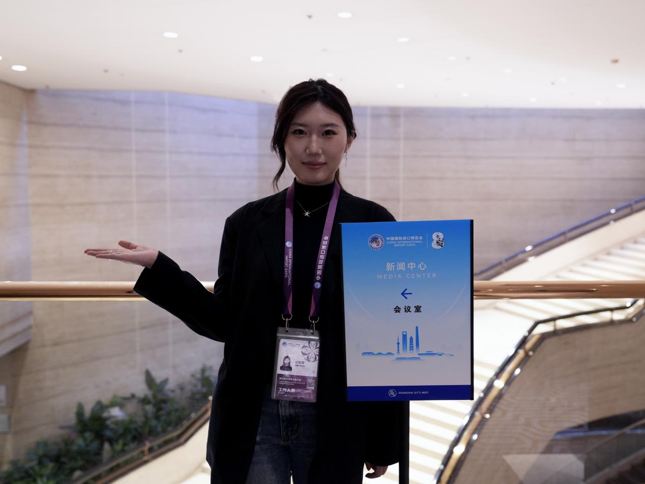 自本科在上海求学以来,我一直十分向往能够成为一名进博会“小叶子”,十分有幸能够在今年圆梦。连日来,我努力将课堂所学的传播理论转化为实践能力,以专业素养服务h动漫的运营工作,用最好的精神面貌迎接来自世界各地的媒体朋友。亲身参与其中,更感这份经历的珍贵与意义。