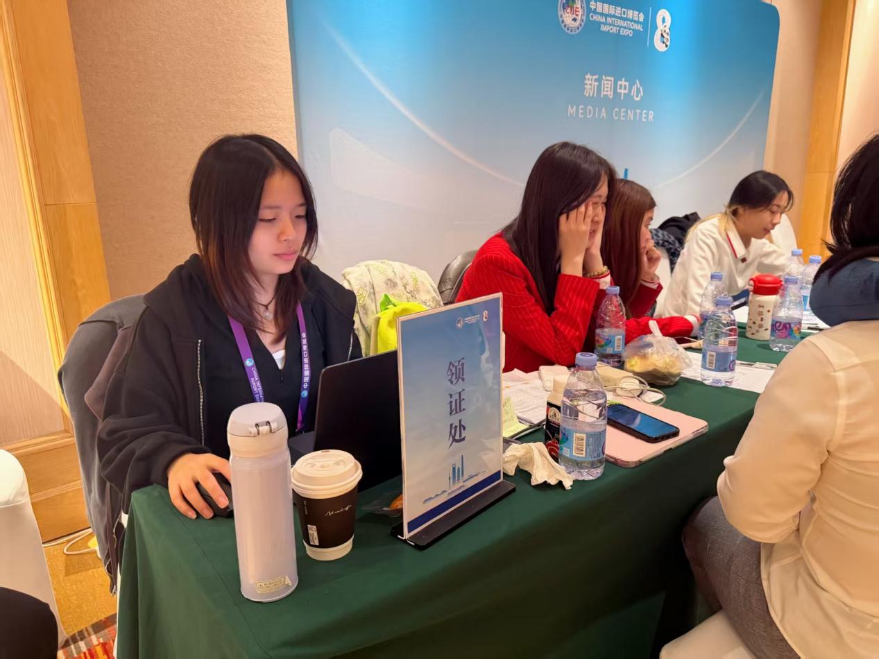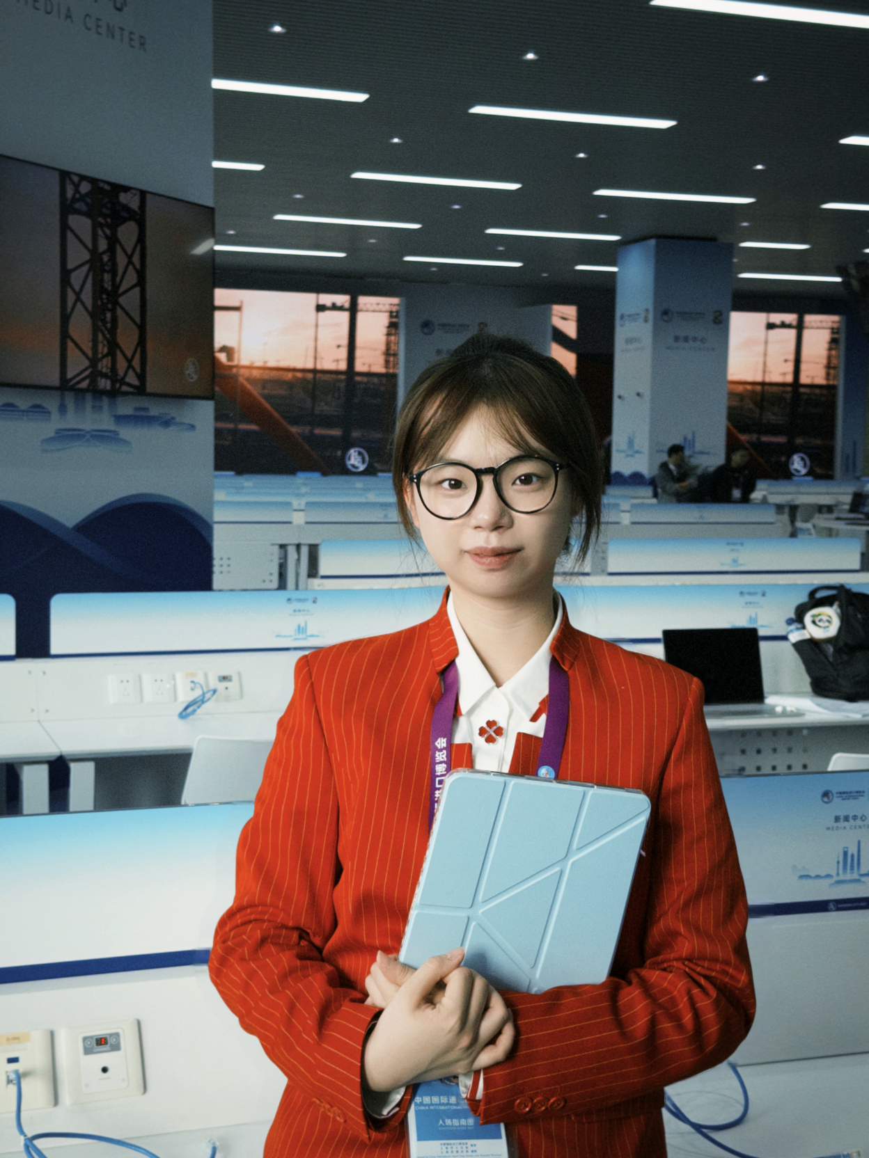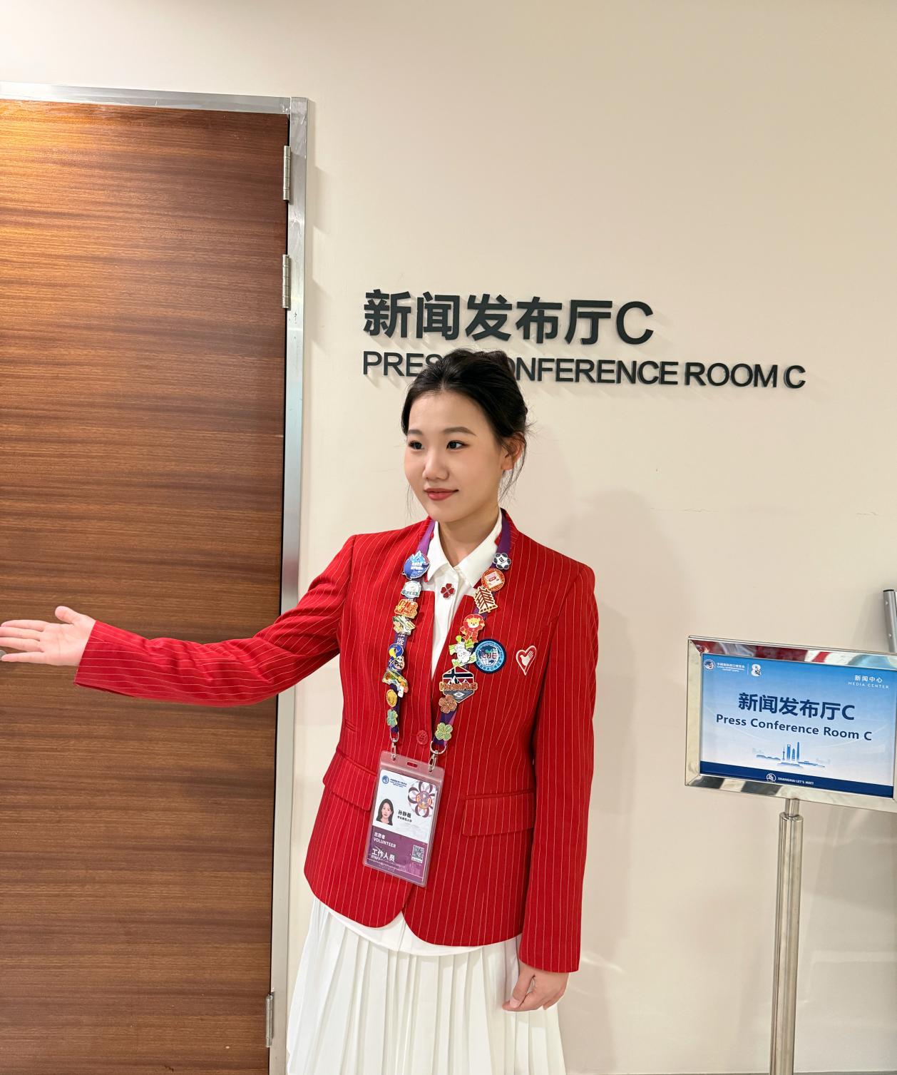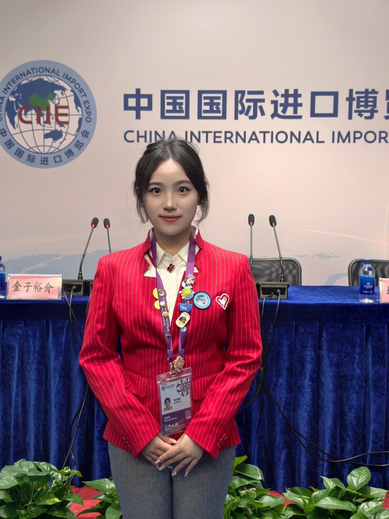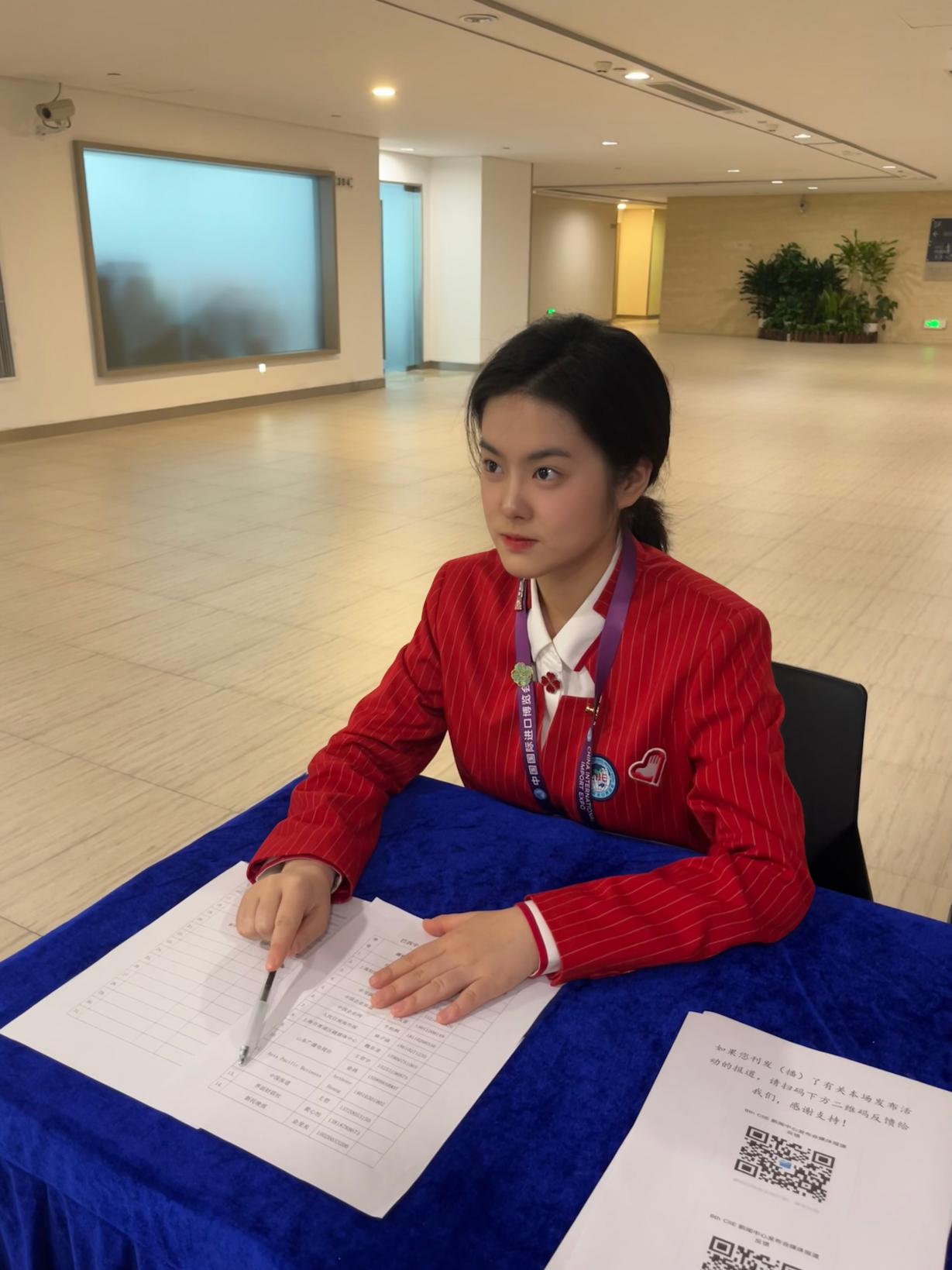 我的岗位是h动漫运营服务志愿者。作为进博会的“信息中枢”,课堂上所学的专业知识在这里具象化:每一个指引手势、每一次耐心解答、每一处设备保障,都是向中外媒体传递进博会组织水平与中国青年志愿者形象的重要符号。作为传院学子,能在此助力中国开放自信的形象传播,我倍感自豪。