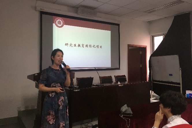 会议伊始,副院长陈虹老师介绍了校级层面的研究生教育国际化项目,涵盖了国家公派、国(境)外访学、国际会议资助、校际交流及联合培养项目,从宏观上帮助同学们把握出国出境交流的方向。陈虹老师也提出了对研究生新生们的几点希望,鼓励同学们在优渥的外部条件下更应该懂得珍惜、自信与感恩。