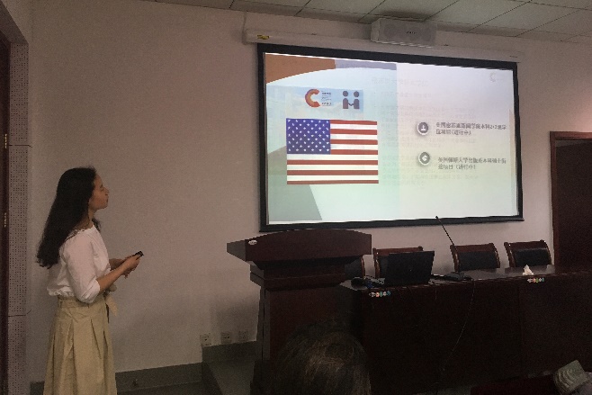 接着,外事秘书吉思琪老师重点介绍了院系层面的交流项目,涉及到与美国、英国、澳大利亚、中国香港、中国台湾、中国澳门等多所境外大学的合作情况,她详述了h动漫 各合作院校的可选方向及录取条件,为同学们提供了切实的建议。