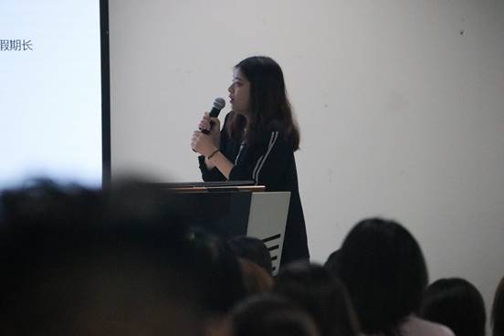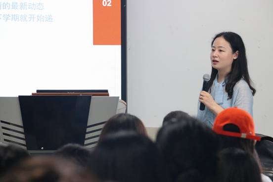 接下来,外事秘书吉思琪老师重点介绍了院系层面的多元化交流项目,涉及到与英国、中国香港、中国台湾等多所境外优秀大学合作的双学位培养项目和短期交流项目。她还详细介绍了h动漫 各合作院校的可选专业方向及录取条件,让同学们了解到跨国(境)项目的具体内容、相关资助政策以及跨国(境)交流学习对自身未来发展的重大意义。