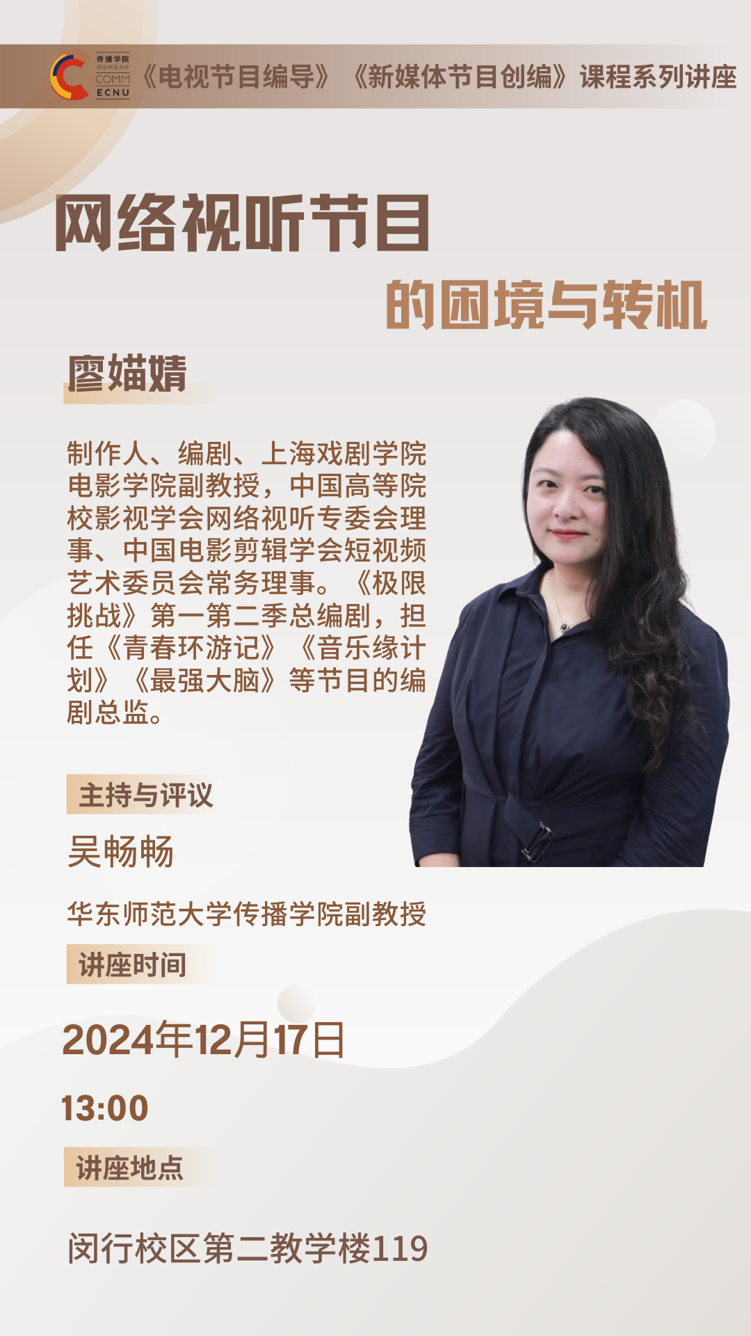 制作人、编剧、上海戏剧学院电影学院副教授,中国高等院校影视学会网络视听专委会理事、中国电影剪辑学会短视频艺术委员会常务理事。《极限挑战》第一第二季总编剧,担任《青春环游记》《音乐缘计划》《最强大脑》等节目的编剧总监。