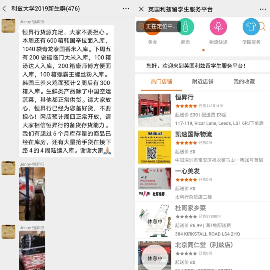 此时,英国很多超市已经关闭线上购买通道,尚在配送的也都需要排队很多天,但是利兹的几家中国超市还在正常运转中,他们努力为留学生供货,像以前一样把大家最喜欢的中国食物不远万里运送过来,安抚大家的情绪,也没有坐地起价。还有其他诸如外卖、快递等留学生服务,也都在尽最大可能满足学生们的需求。这些都是来自同胞的善意,也让我们明白:再小的力量拧凝聚在一起也可以变得很强大。