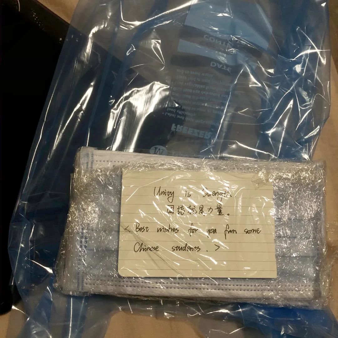 据中国民用航空局,这批专门为海外留学生准备的“健康包”多达50万份,覆盖20多个国家。中国在最困难的时候依然挂念着海外学子,“风雨同舟,患难与共”真的不只是说说而已。这对特殊时期身处异乡的我们来说意义重大,不仅仅是对生活需要的满足,让远在国内的家人朋友安心,更是对我们精神上的支持:在抗疫这条路上,我们并不孤单。