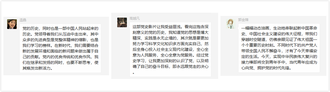 首先,两位主持人带领大家学习观看了党史资料《画说党史》。在观看结束后,几位党员主动在群内分享自己的感悟。