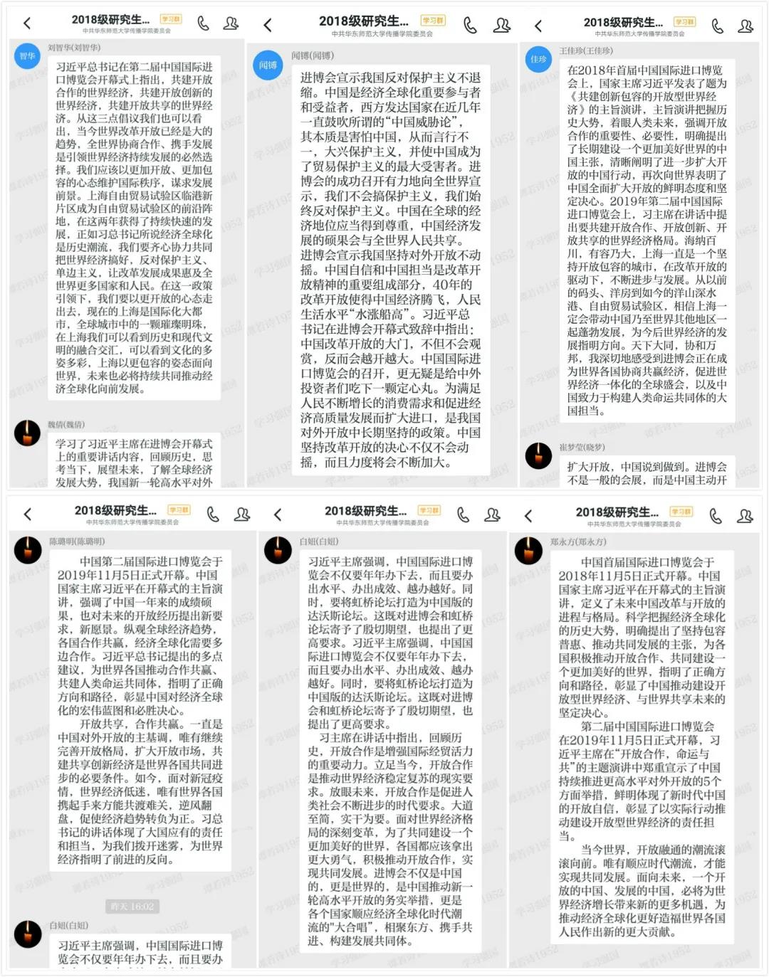 随后,各位党员通过认真学习习近平总书记在首届和第二届进博会开幕式上的主旨演讲精神及习近平总书记考察上海重要讲话精神,围绕学习内容、结合自身的思考总结,积极在学习强国平台展开讨论、畅谈感想。