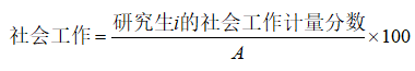其中,研究生i的社会工作计量分数按如下表6、表7确定的社会工作类成果量化标准将有关成果量化求和,再加上其他社会工作成果的量化结果得出,A为同一专业候选人的社会工作的最高分。
