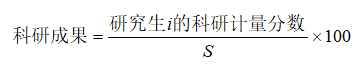 其中,研究生i的科研计量分数按如下表1~表5确定的科研成果量化标准将有关成果量化后直接求和得出,S为同一专业候选人的科研计量分数的最高分。