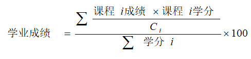 其中,为同专业候选人同一课程i的成绩最高分,课程i学分为研究生培养计划规定的课程i的学分数。