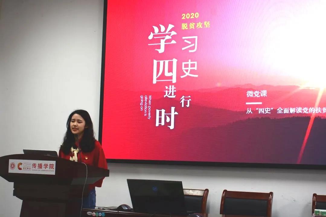 为进一步贯彻落实习近平新时代中国特色社会主义思想,扎实推进党员“四史”学习教育,11月13日中午,h动漫 2020级研究生第二党支部于学院212报告厅开展微党课录制活动。本次录制主要分为两部分,首先h动漫 第二党支部党员毛佩筠同志围绕“四史引导下的脱贫攻坚”进行讲解,展示习近平总书记提出的学习四史的重要意义,鼓励党员们要将学习贯彻党的创新理论作为思想武装的重中之重,并将学习党史、新中国史、改革开放史、社会主义发展史结合起来。