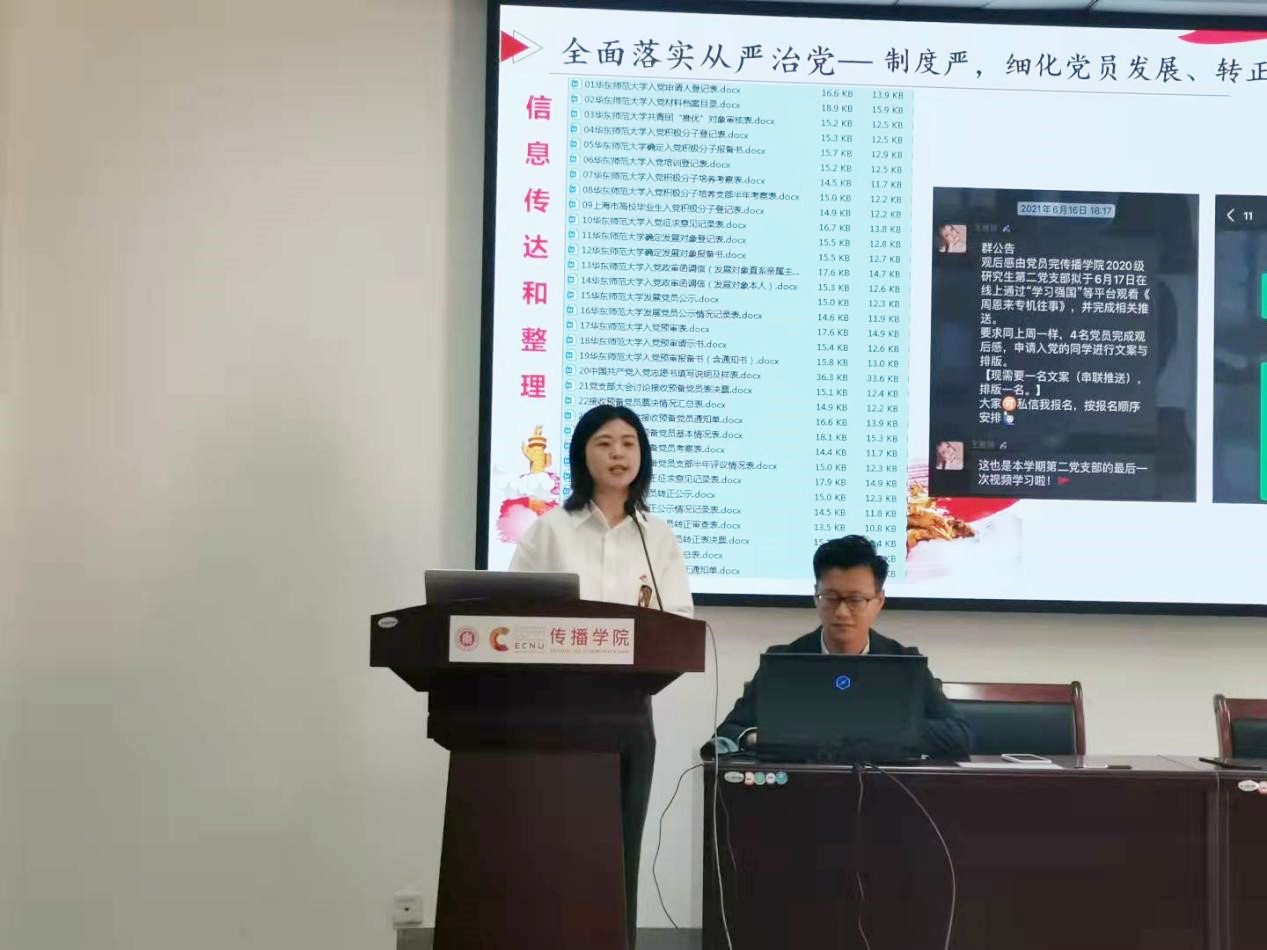 随后,h动漫 2020级研究生第一党支部书记韩亚鲁介绍了党支部组织生活与系列活动。包括:参观上海历史博物馆、助力进博会、“红色”手工模型搭建竞赛、“微党课”制作竞赛等“四史”、党史学习教育活动,让全体学生党员对日常的党组织生活有了更直观的了解。