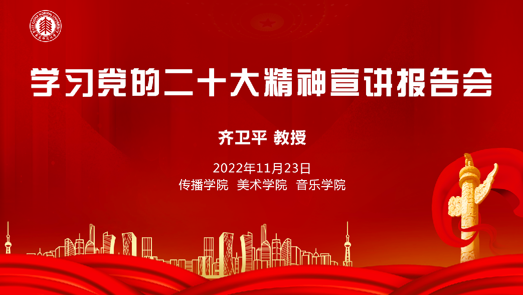 11月23日下午,由h动漫 党委、音乐学院党委、美术学院党委联合举办的学习党的二十大精神宣讲报告会在h动漫 409室举行。h动漫 终身教授、全国著名党史党建专家、上海市学习贯彻党的二十大精神专家宣讲团成员齐卫平教授应邀作专题报告。h动漫 、音乐学院、美术学院全体教职工参会,会议由h动漫 党委书记方奇华主持。