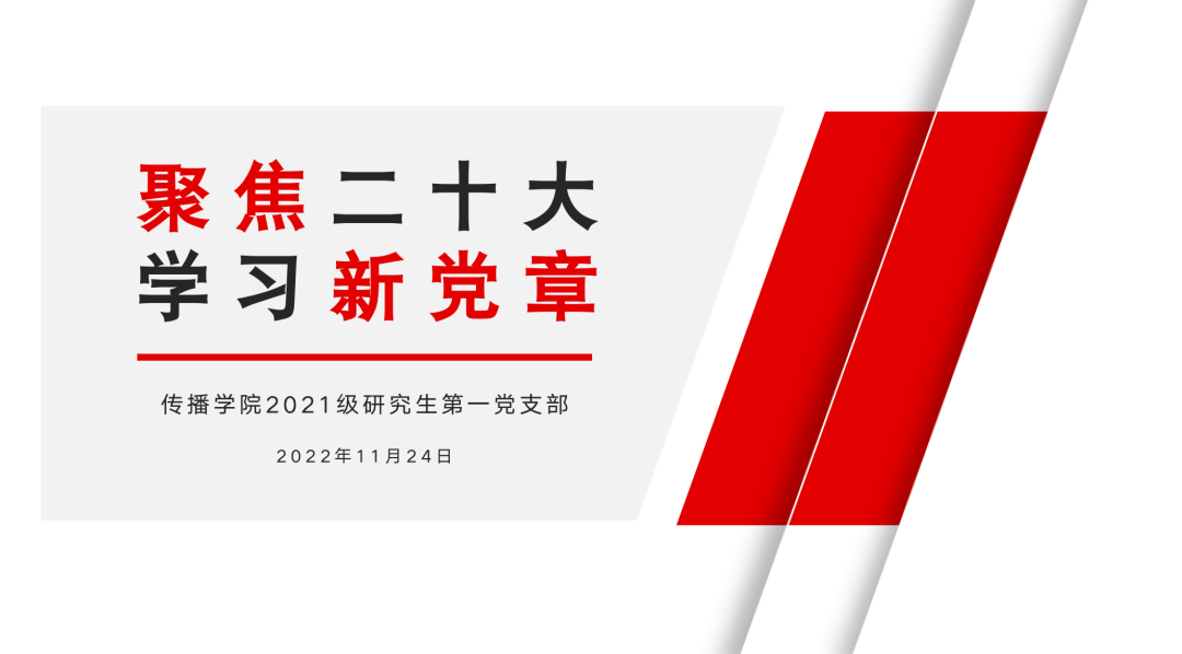 为持续学习贯彻党的二十大精神,深入领会新修订的《中国共产党章程》,进一步增强党员的政治意识与使命担当,2022年11月24日,h动漫 2021级研究生第一党支部在h动漫 405教室开展“聚焦二十大,学习新党章”组织生活会。会议由h动漫 2021级研究生第一党支部书记吴婷同志主持。
