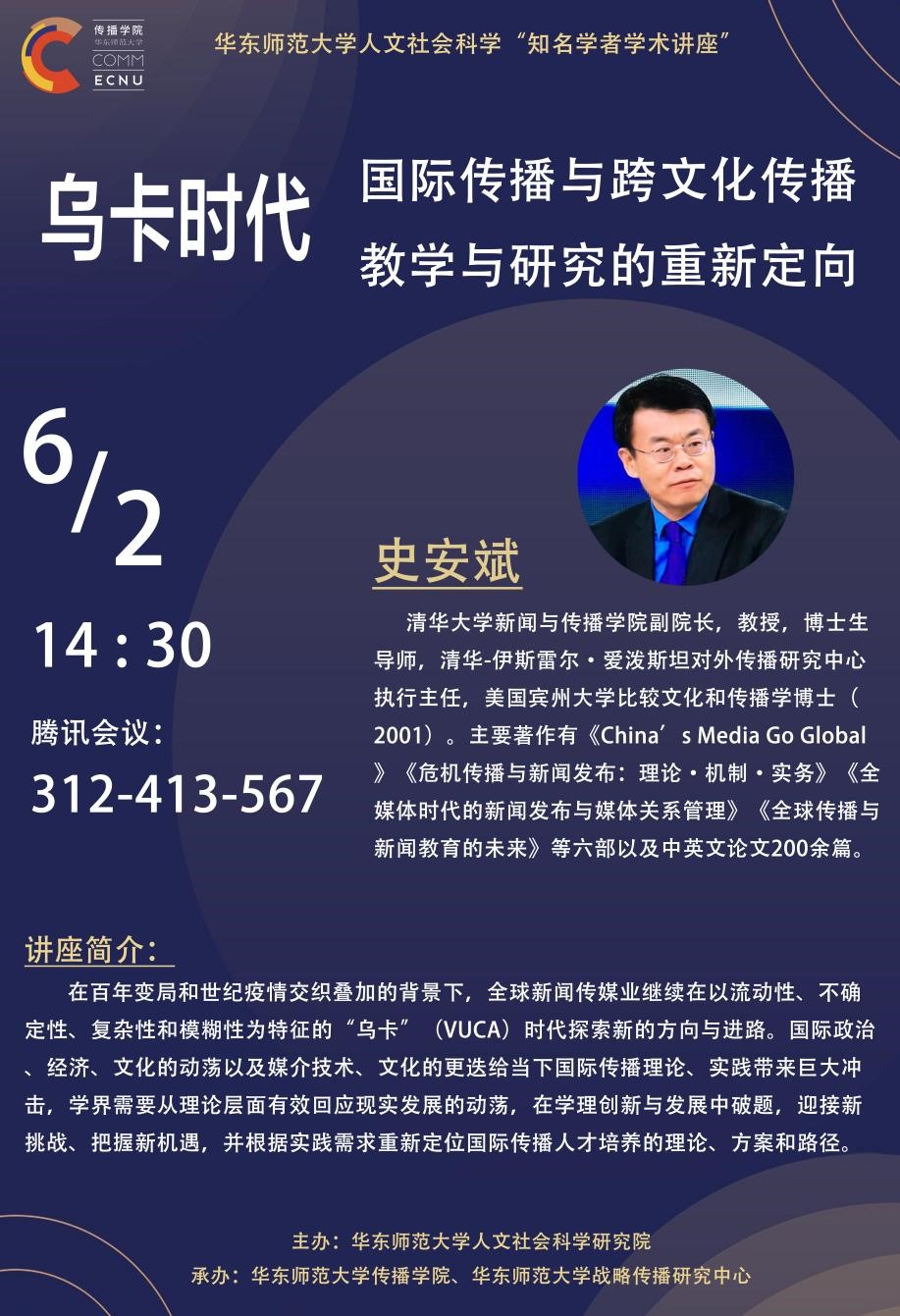 史安斌,清华大学新闻与h动漫 副院长,教授,博士生导师,清华-伊斯雷尔·爱泼斯坦对外传播研究中心执行主任,美国宾州大学比较文化和传播学博士(2001)。主要著作有《China’s Media Go Global》《危机传播与新闻发布:理论·机制·实务》《全媒体时代的新闻发布与媒体关系管理》《全球传播与新闻教育的未来》等六部以及中英文论文200余篇。