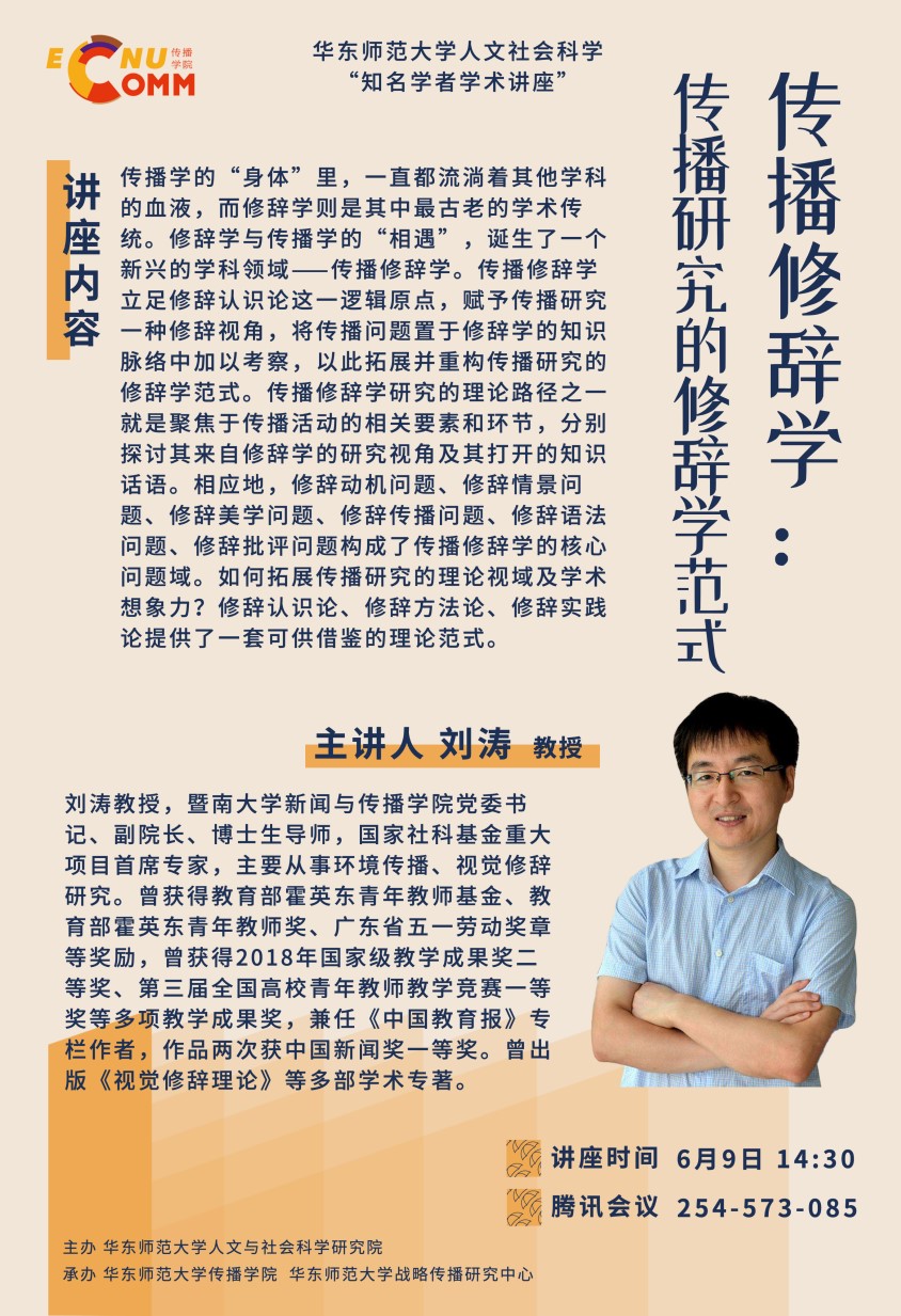 刘涛教授,暨南大学新闻与h动漫 党委书记、副院长、博士生导师,国家社科基金重大项目首席专家,主要从事环境传播、视觉修辞研究。曾获得教育部霍英东青年教师基金、教育部霍英东青年教师奖、广东省五一劳动奖章等奖励,曾获得2018年国家级教学成果奖二等奖、第三届全国高校青年教师教学竞赛一等奖等多项教学成果奖,兼任《中国教育报》专栏作者,作品两次获中国新闻奖一等奖。曾出版《视觉修辞理论》等多部学术专著。