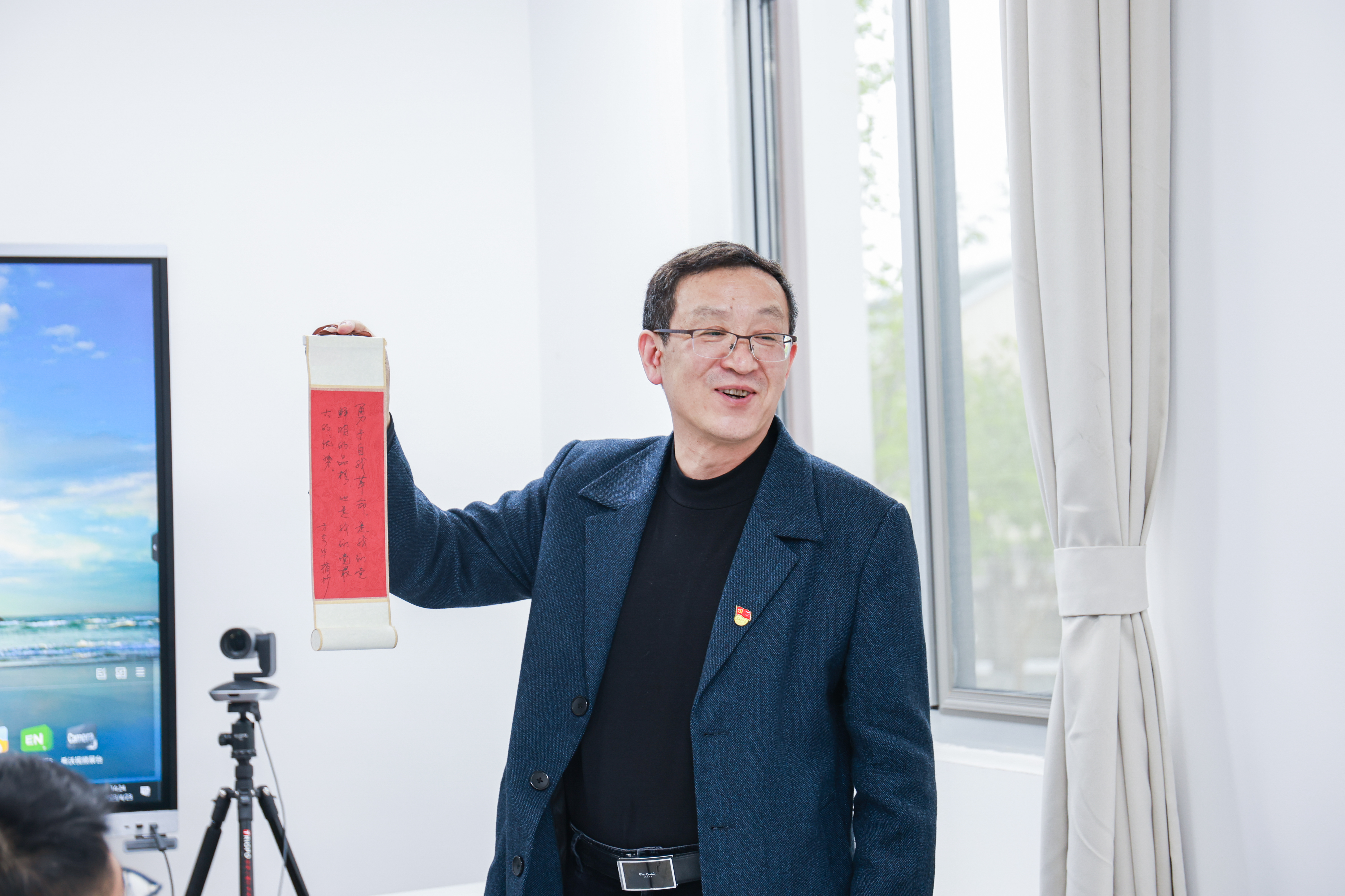 随后,与会党员们纷纷拿起自己的书法作品,分享学习心得,现场掌声此起彼伏,讨论氛围热烈浓厚。