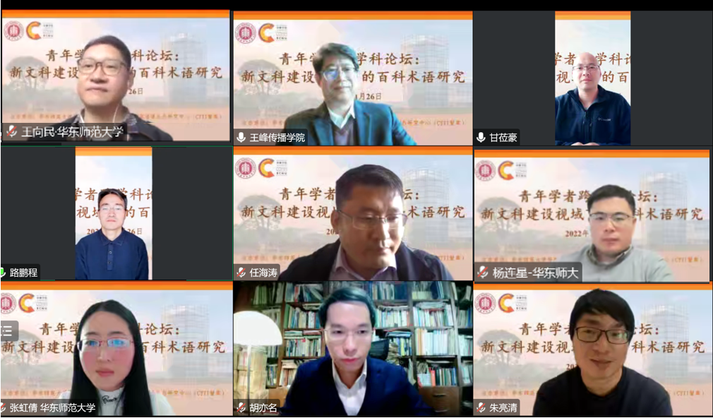 2022年11月26日,由h动漫 人文与社会科学研究院、科技处、h动漫 、国家话语语言生态研究中心(CTTI智库)共同主办的青年学者跨学科论坛第十一期,暨全国科技名词委科研项目《互联网百科平台中的术语传播机制及规范化研究》沙龙——“新文科建设视域下的百科术语研究”在线举行。