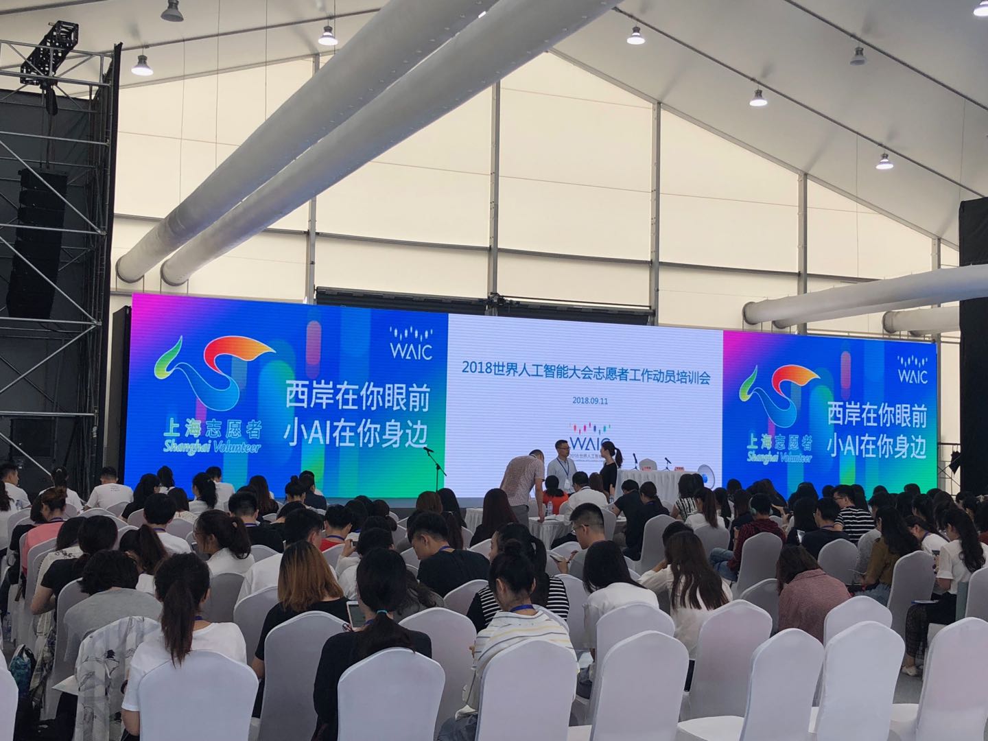 听说可以参加本次人工智能大会志愿服务,同学们报名非常踊跃,经过层层选拔,最终近百位志愿者顺利入选。由于需要志愿者提前到大会现场准备,有时同学们要很早起床,大家挤在大巴车上,虽然睡眼惺忪,但是内心充满了紧张的期待。为了保持沟通,志愿者必须随时准备对接工作的状态。