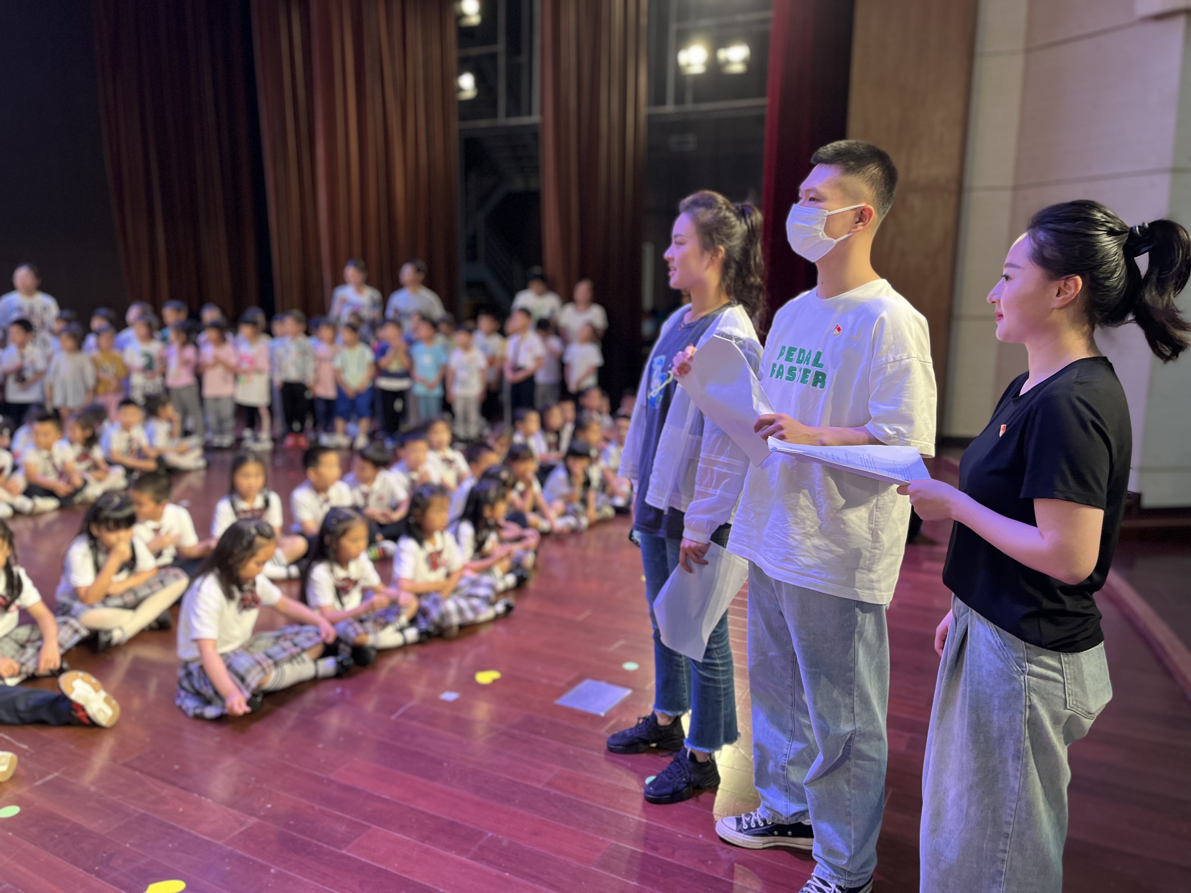 6月15日,周雨洁、余华勇、谭梦心等党员前往h动漫 附属紫竹幼儿园,以专业的播音主持知识、通俗易懂的语言、以及循循善诱的教学为幼儿园的孩子们进行朗诵指导,并协助排练节目队形,帮助毕业活动整体把关。