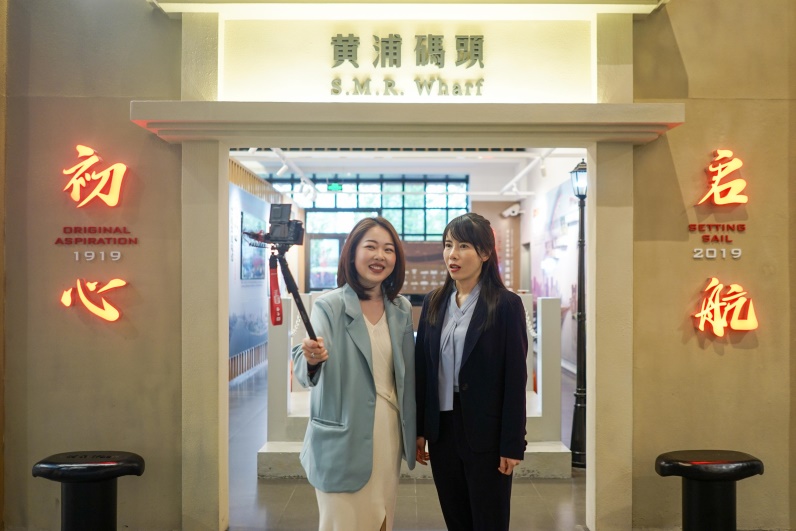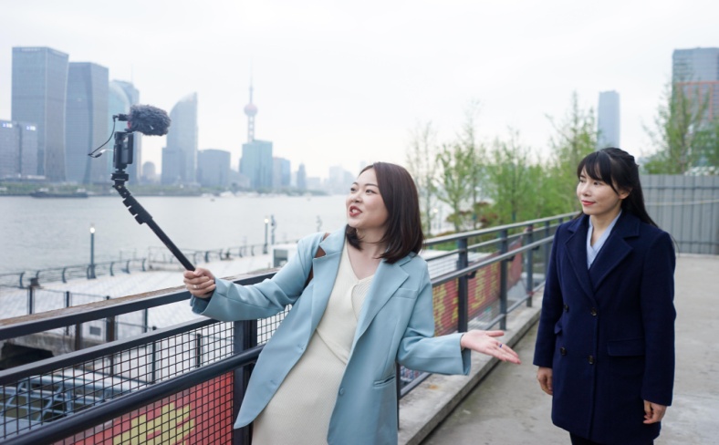 图:杨欢为百年建党报道拍摄“黄浦码头”vlog