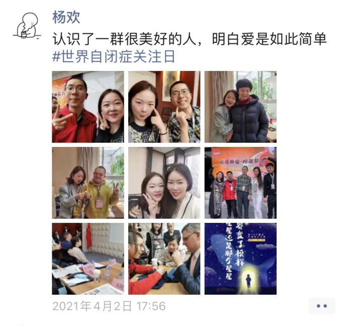 “媒体需要给整个社会提心正气,很多东西,你用客观公正的语言记录下来,一定会有价值”。4月2日“世界自闭症关注日”前夕,杨欢写的特稿刊发了。她在朋友圈里感慨,“当记者时间不长,自闭症群体是接触过最难聊也是最容易聊的采访对象。他们教会我快乐如此简单。我们无需努力成为成功的人,要努力成为有价值的人”。