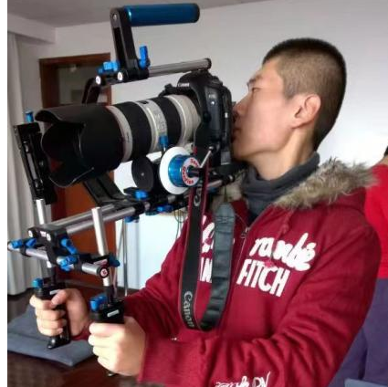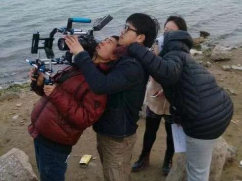 毕业七年,胡俊珂谈起华东师大和h动漫 ,依旧无比亲切。在他脑海中,与传院最深度的连结发生在2014年。那一年,他大二,正赶上h动漫 建院十周年,刘弢老师带着他共同制作了十周年的院庆视频。在胡俊珂的描述中,他和刘弢老师是“老哥俩”,他们白天拍摄,晚上就蹲在学院四楼角落临时改制的工作室里剪片子。受到拍摄器材和设备的限制,整支视频的制作都透着一股“笨拙”感:他们发明了破产版的实时绿幕抠像,用着没有伺服、没有变焦的纯手动摇臂,把书包当配重替代稳定器;有时候为了想出点特别的运动轨迹,还用了很多笨办法,比如蹲在凳子上然后站起来,模拟一种飞行器的感觉……