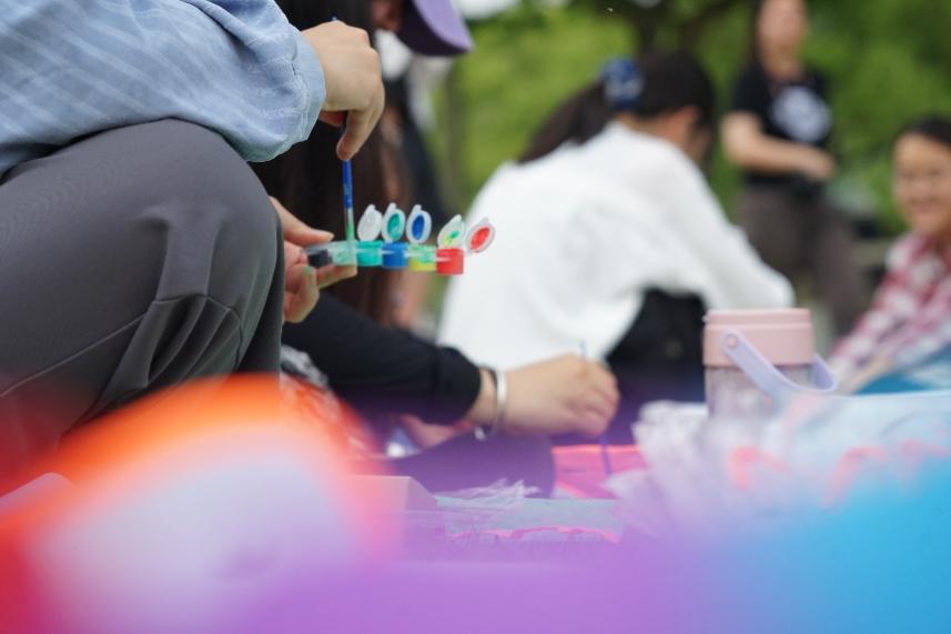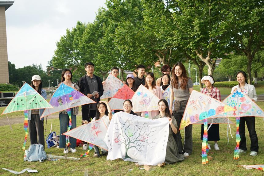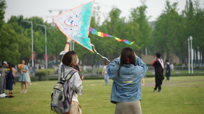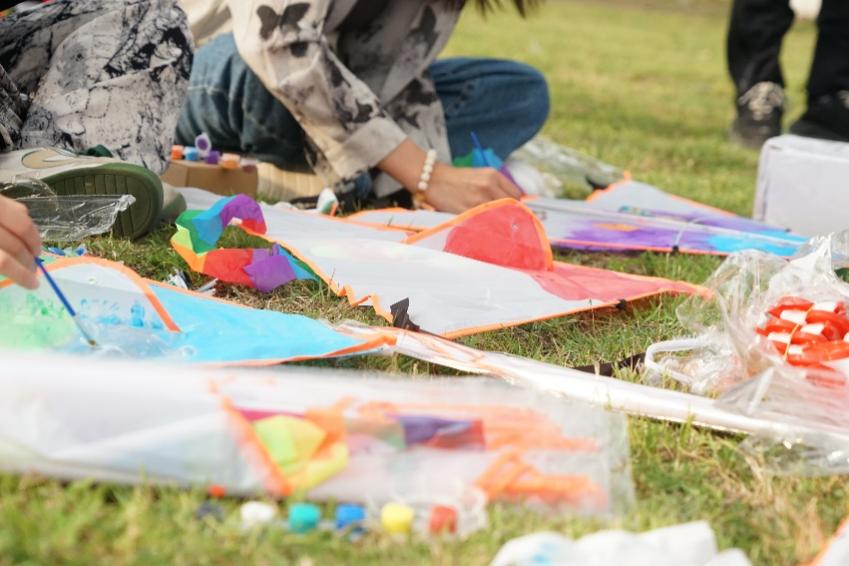 草地解压会活动顺利举行。同学们一起在草坪上画风筝放风筝、吐露烦恼,绘制祝福明信片。在风和日丽中,大家共同奔赴一场心灵之旅。