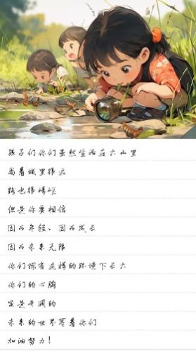 写祝福、画祝福,让更多的社会群体关注到留守儿童问题。草地解压会上,我们将大家的热情转达给贫困山区孩子,告诉他们在山的另一边有很多的哥哥姐姐在一直关注着他们!同时我们也展开了线上参与平台,邀请大家给孩子们展示这个丰富多彩的世界~