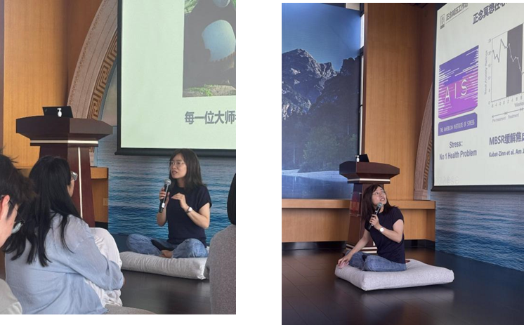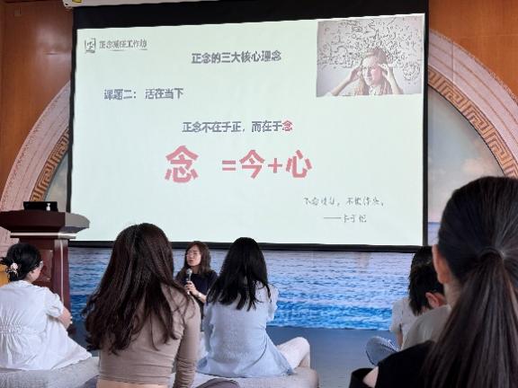 吴冉老师先给同学们讲述了正念的三大核心理念,接着给大家介绍了正念冥想的作用效果。正念冥想的练习可以帮助人全然打开对自己的觉察,最终能帮助人达到一种对自己的全然的接纳。