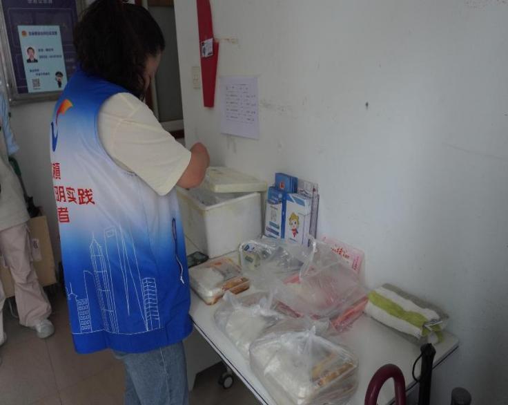 因此,我们找到居委会社工谭文武询问具体缘由。谭文武不仅是“为老服务”的社工,也是第五网格的专职网格员,特殊户的送药送饭都是由他来承担的。他介绍,有一户老人独居,且患有精神疾病。子女长期在外地,只能通过监控摄像头观看老人的动态。他每日都会上门,借给老人送饭的机会,关心他的身体状况,帮他换一换床单被褥,也与他说说话,防止他感到寂寞。