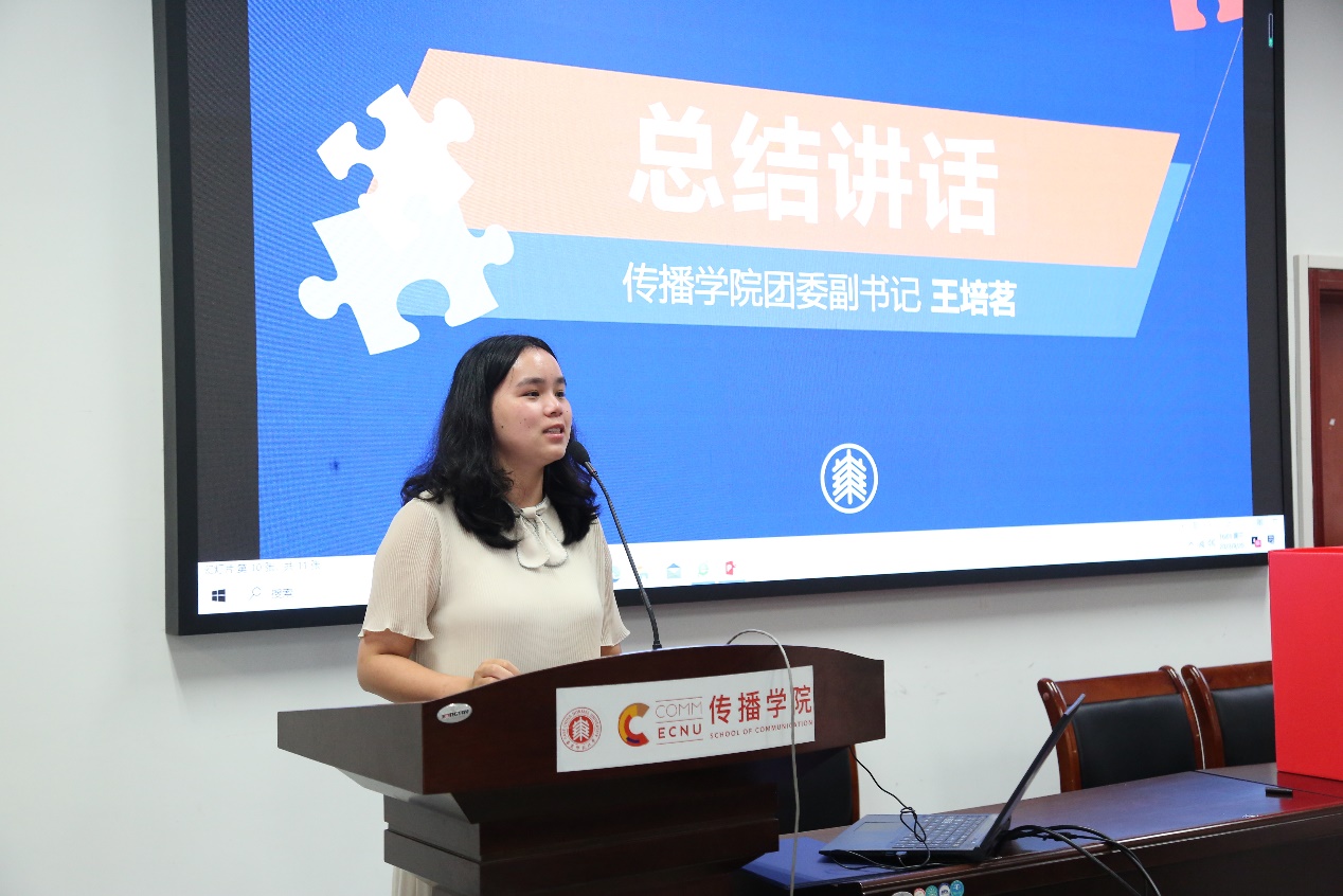 团委副书记王培茗总结讲话,她感谢了在场学生代表的到来,圆满完成肩上的使命,同时,感谢上一届主席团及学生会全体成员的奉献,并对新一届主席团成员提出期望,希望新一届h动漫