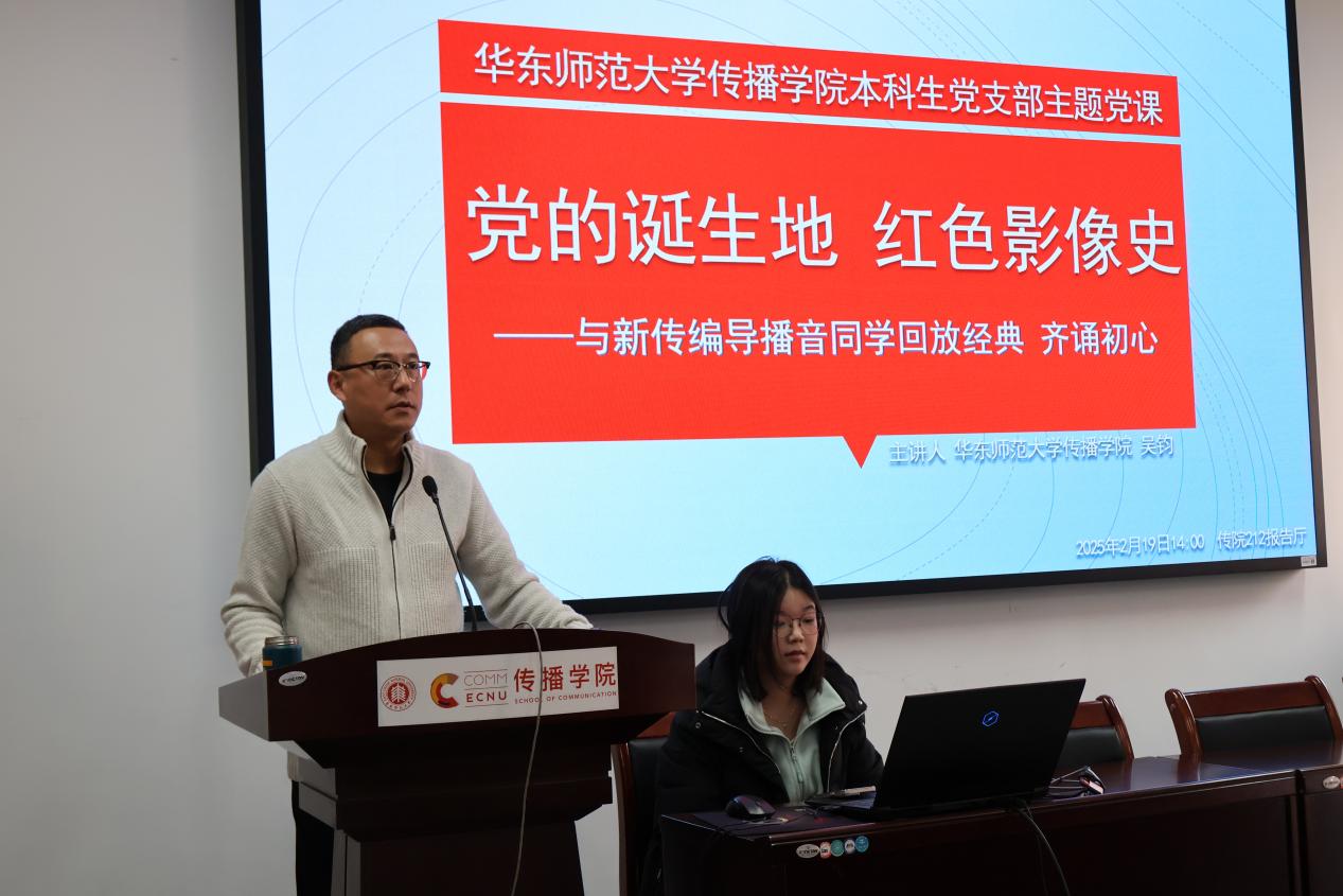 民主评议工作后,支部邀请了h动漫 吴钧老师为支部党员同志和入党积极分子同学做题为《党的诞生地 红色影像史》的主题党史讲座。吴钧老师从上海的红色基因讲起,通过播映《义勇军进行曲》《霓虹灯下的哨兵》等经典红色影像,以及《红旗飘扬上海滩》等老师自己参与制作的红色影像,为大家展示了上海作为党的诞生地的革命行迹,也表达了自己对红色影片制作的要求和特有的情怀。