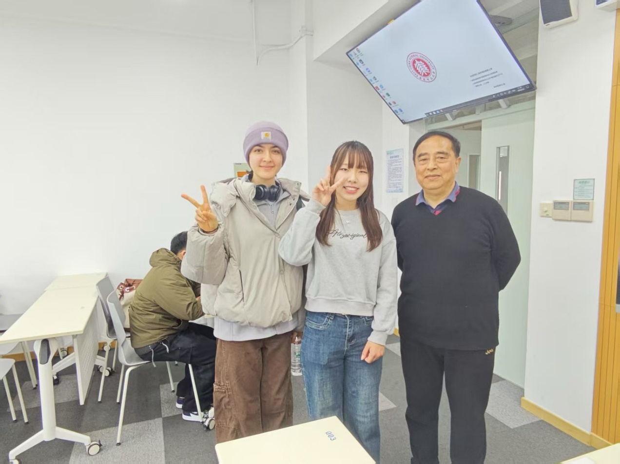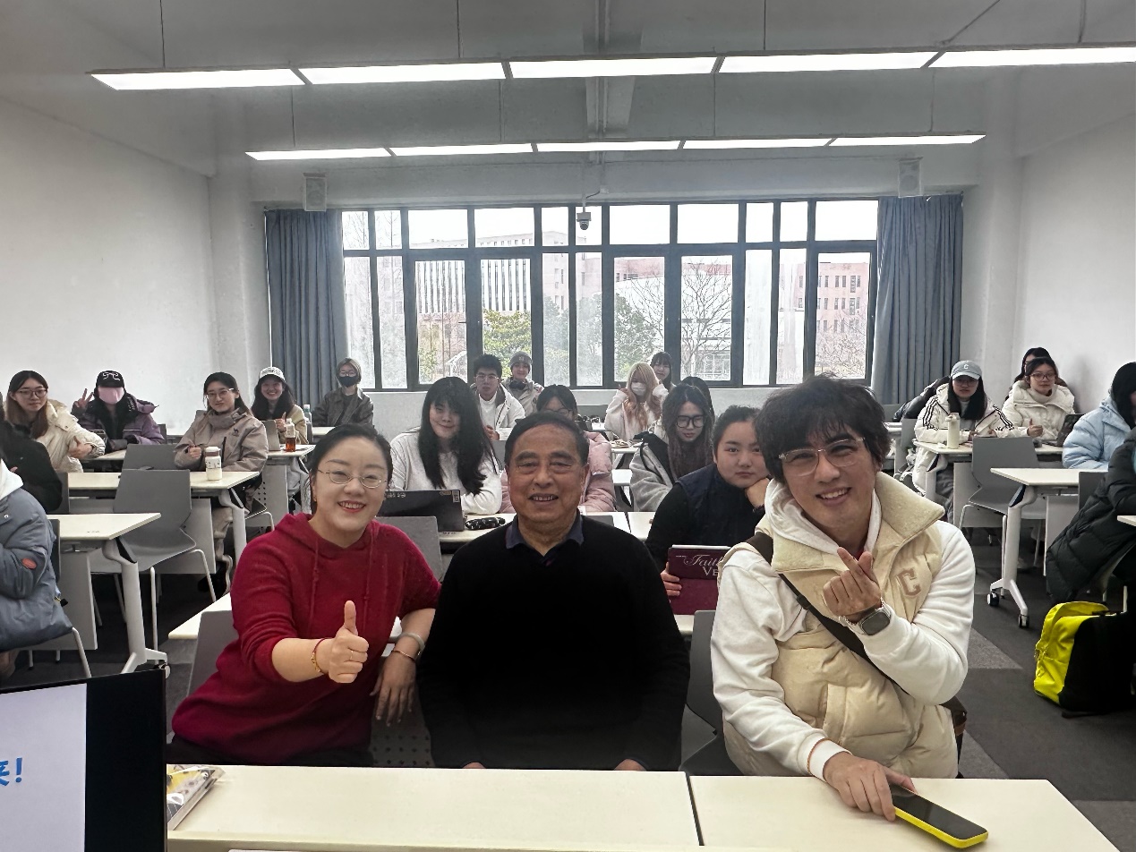 讲座结束后,李亦中教授与聆听讲座的美国、日本留学生同学合影