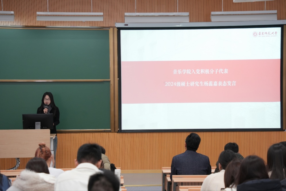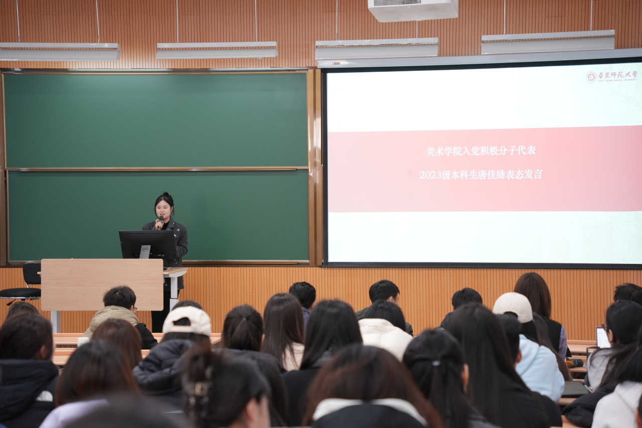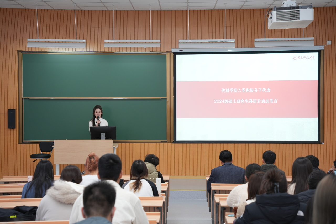 h动漫 2024级硕士研究生孙语君、美术学院2023级本科生唐嘉励、音乐学院2024级硕士研究生杨蕊嘉作为入党积极分子代表依次作表态发言。
