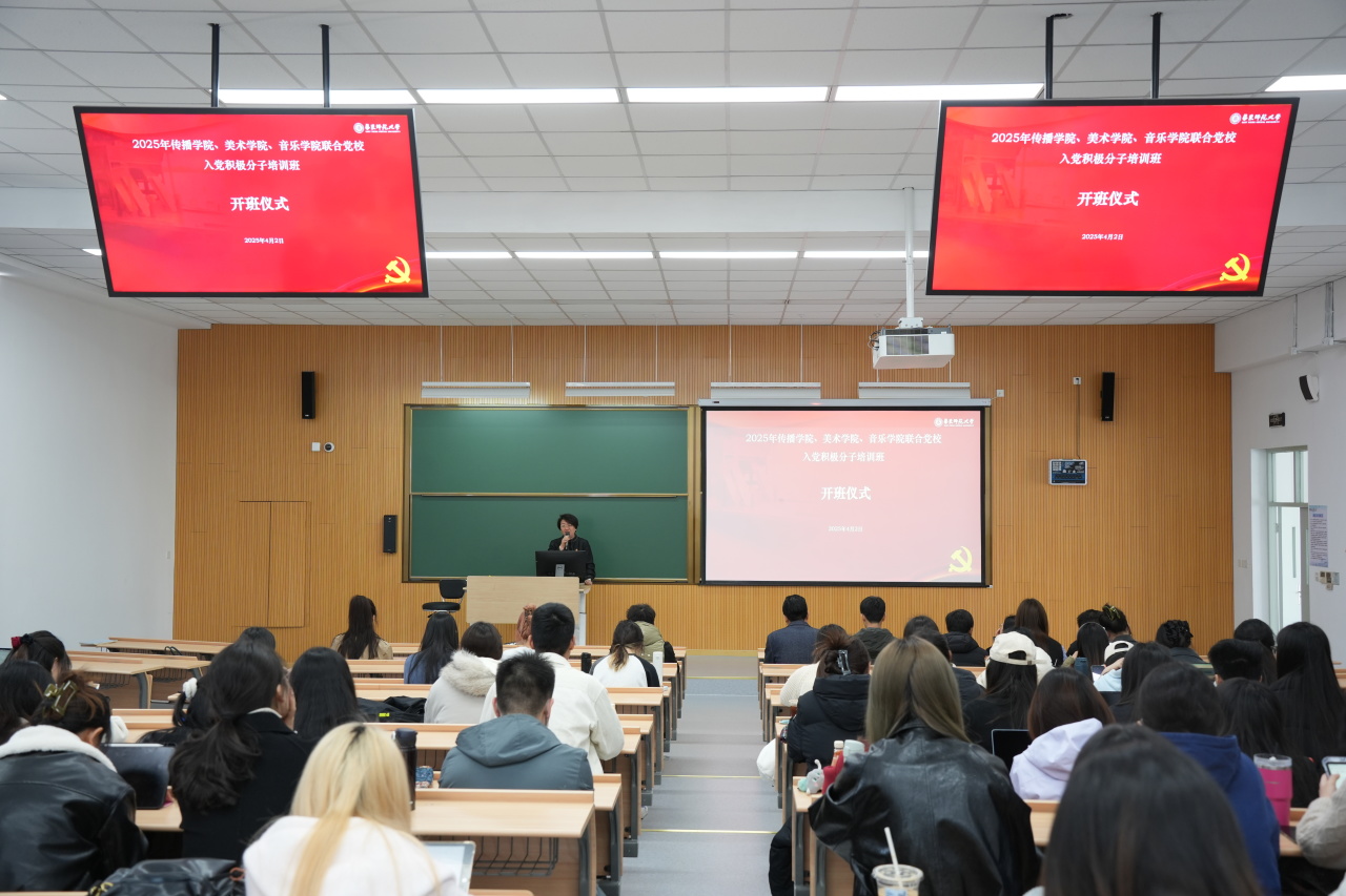4月2日下午,2025年h动漫 、音乐学院、美术学院联合党校入党积极分子培训班于闵行校区二教105教室顺利开班。美术学院党委副书记冯舸、音乐学院党委副书记兼副院长王成伟及各学院组织员出席,105名入党积极分子参加培训。开班仪式由h动漫 党委副书记兼副院长杜彬彬主持。