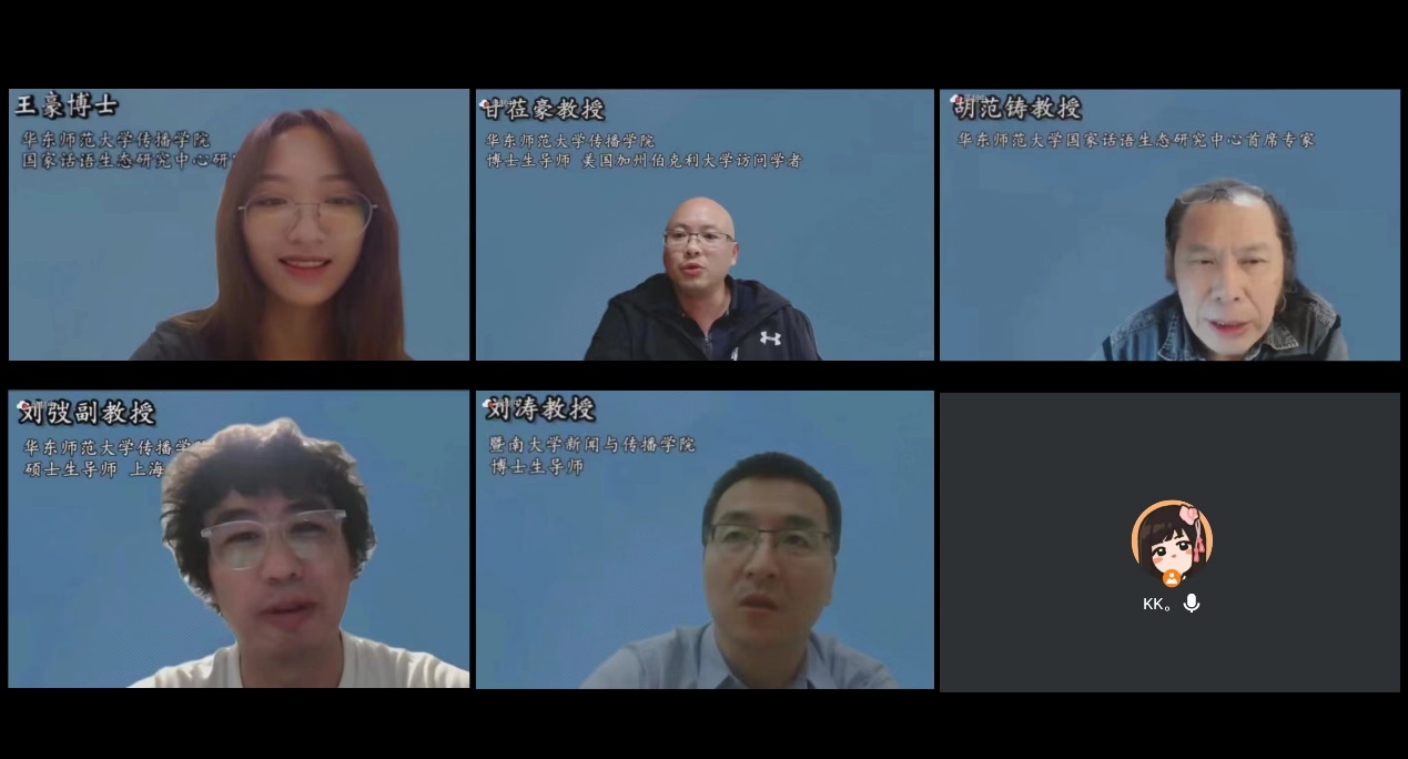 2023年10月11日晚,学术主题对谈“数字景观美化了我们的生活吗?”在线上召开。h动漫 国家话语生态研究中心首席专家胡范铸、暨南大学新闻与h动漫 教授刘涛、h动漫 副教授刘弢及h动漫 教授甘莅豪为此次云上对谈的嘉宾,h动漫 2022级博士生王豪担任主持人。近百位线上观众参与此次沙龙。