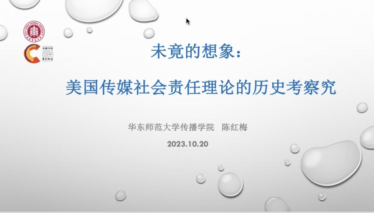 10月20日下午,h动漫 陈红梅教授以“未竟的想象:美国传媒社会责任理论的历史考察”为主题开展线上讲座,探讨国家干预新闻业的举措在美国难以进展的原因。近百名同学聆听此次讲座。