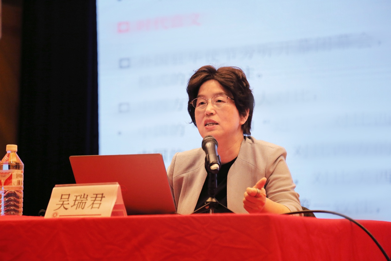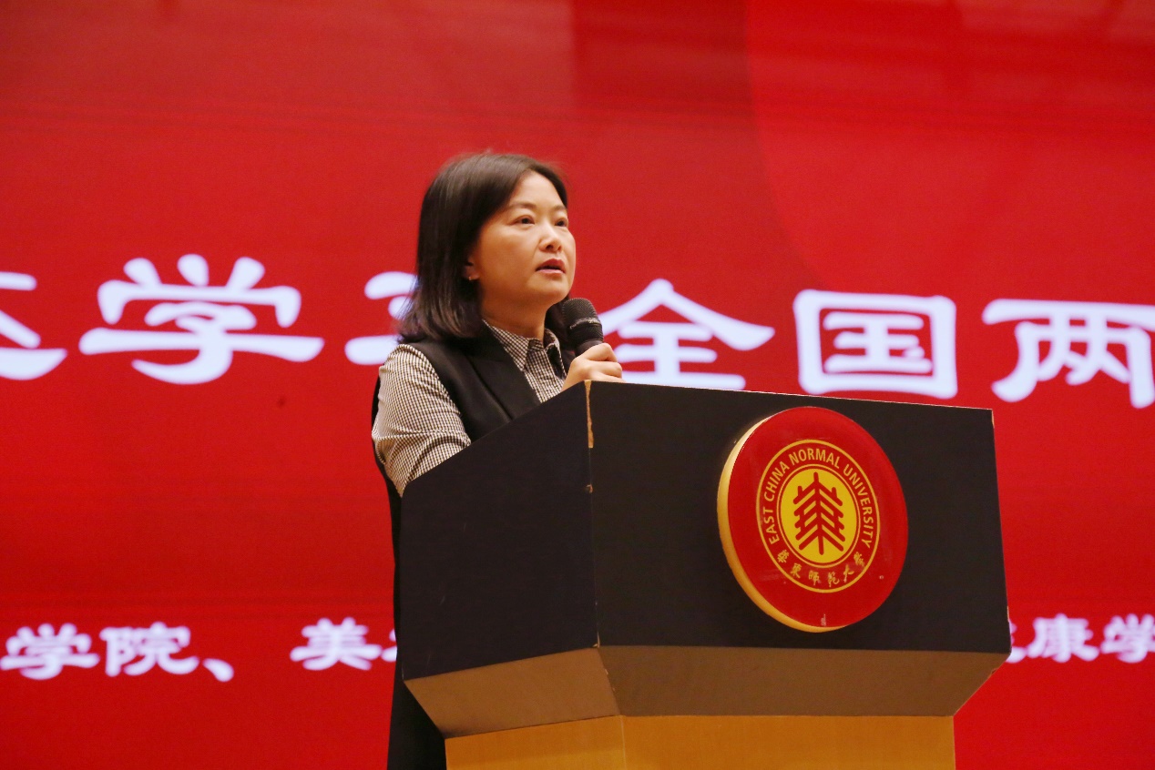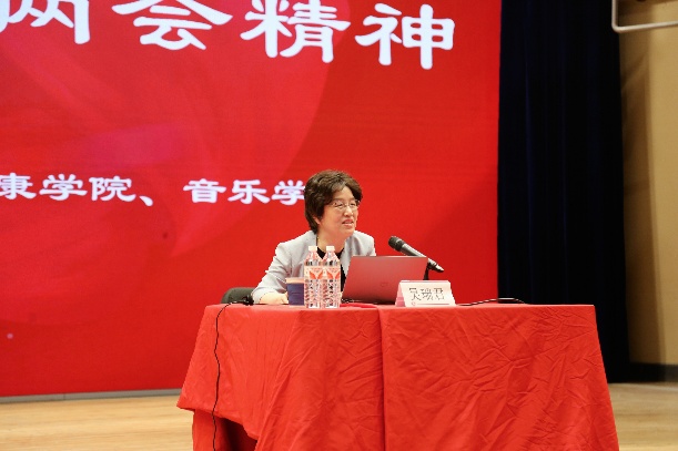 4月16日下午,为传达学习2025年全国两会精神,深入学习贯彻习近平新时代中国特色社会主义思想,助力教育强国建设,h动漫 、美术学院、体育与健康学院和音乐学院在闵行校区音乐厅联合开展专题辅导报告暨党委理论学习中心组(扩大)学习会,全国政协委员、农工党h动漫 委员会主委、图书馆馆长吴瑞君教授作专题报告。四家单位全体教职工参加学习活动,活动由音乐学院党委书记赵旌旌主持。