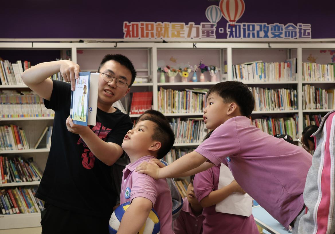 志愿者杨旸教育和劝说撕坏图书的小朋友