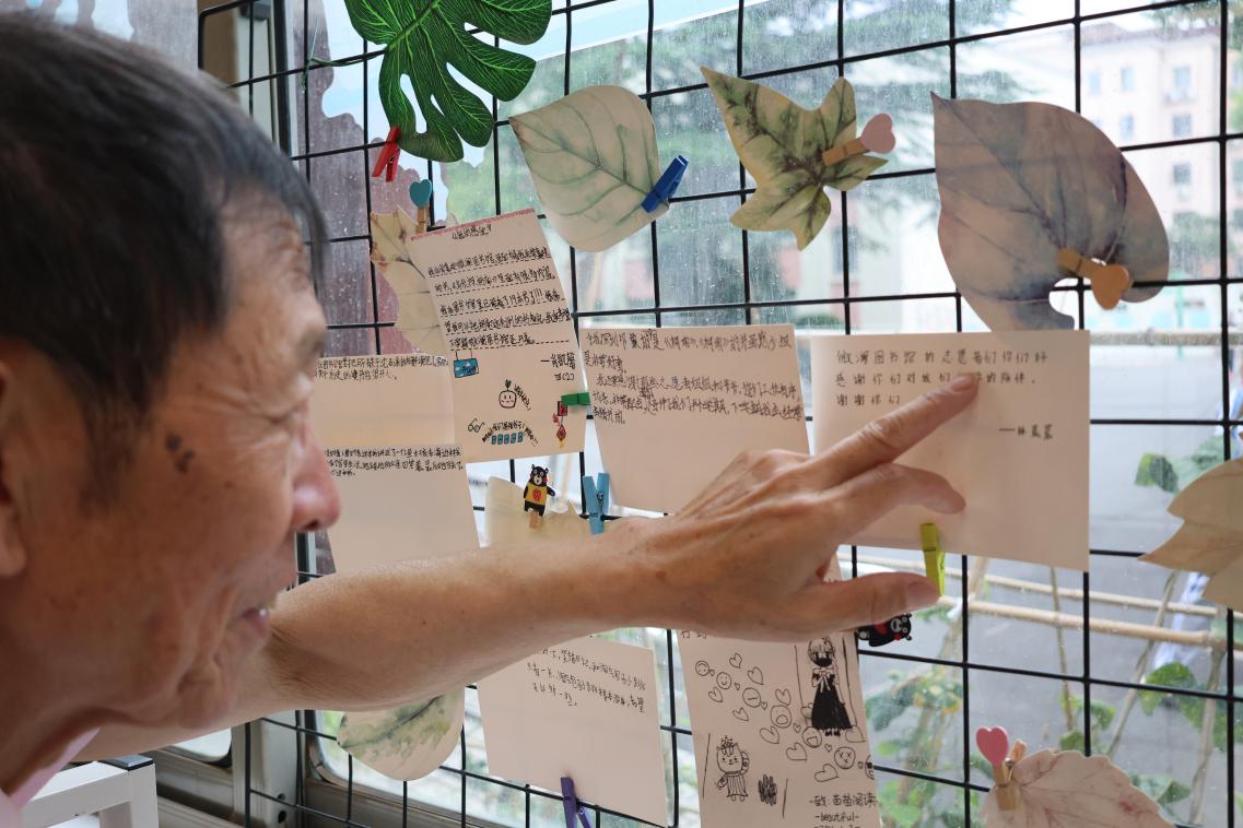 程春华笑着阅读孩子们写给图书馆的“心里话”