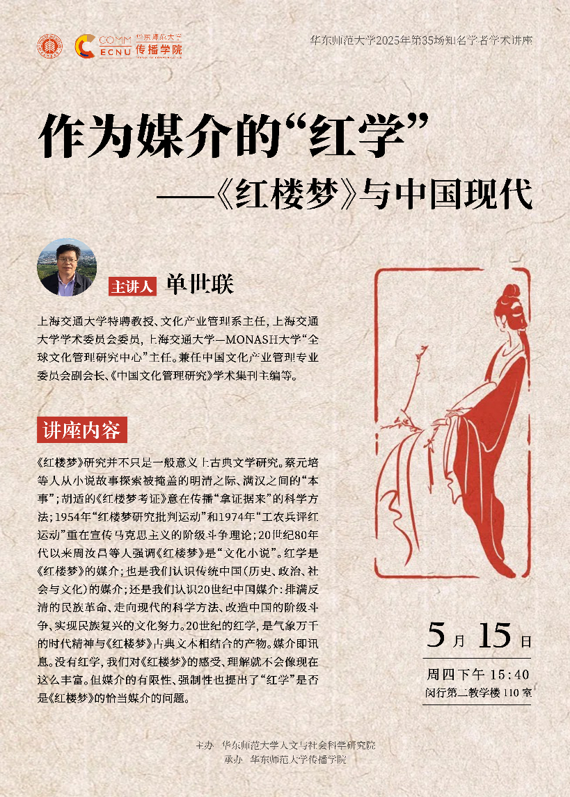 单世联,上海交通大学特聘教授、文化产业管理系主任,上海交通大学学术委员会委员,上海交通大学—Monash大学“全球文化管理研究中心”主任。兼任中国文化产业管理专业委员会副会长、《中国文化管理研究》学术集刊主编等。长期从事人文学术和文化思想研究,读写范围涉及中西美学、《红楼梦》、中国革命文化、中国现代思想史、纳粹大屠杀等领域。21世纪以来,重点研究文艺-文化理论、文化思想史与文化产业实践。