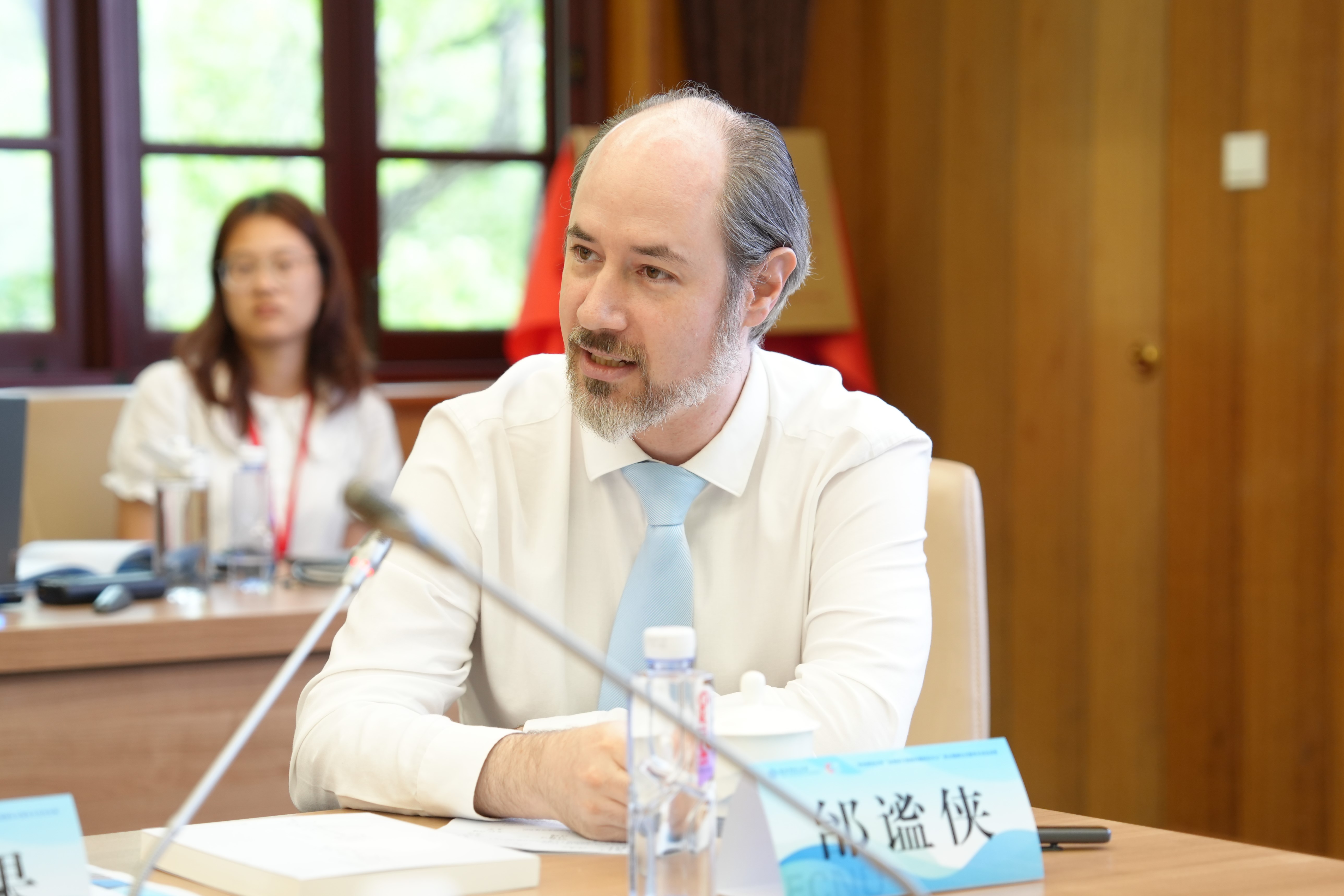 南开大学哲学院副教授、南开大学全球老学研究中心主任邰谧侠从跨文化传播视角分享了自己对老子思想的全球传播的看法。他以自身经历为例,指出自己就是老子思想国际传播的典型个案——14岁在美国接触《道德经》英译本后终身投入研究。他还提出研究中心的英文名称中的“传播”应翻译“circulation”,并以波斯语转译英译本的典型案例说明,老子传播并非单向输出,而是呈现多向循环特征,生动展现了文化互鉴的复杂性。