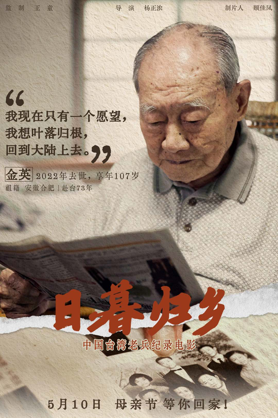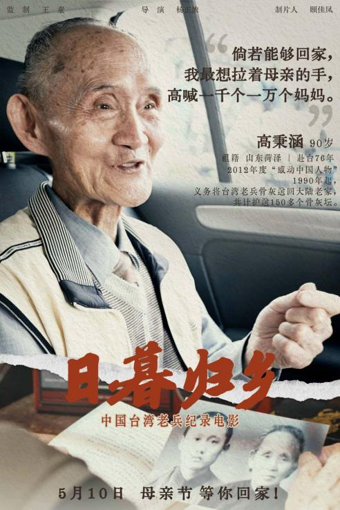 《日暮归乡》是一部献给母亲的作品,是首部聚焦台湾老兵群体的纪录电影,以六位祖籍、背景、身份各不相同的老兵为主人公,用真实镜头诉说着台湾老兵渴望回家的肺腑之声。《归乡》本身是一部很年轻的作品,全片时长一个半小时,片程过半后的素材调度在节奏上稍显碎片化,但胜在质朴,“回家”的主题引人共鸣,其立意深刻已超脱于叙事技巧本身。纪录片叙写了一代人的乡愁,也提出了值得深思的议题——当时代的接力棒交到新一代人手中,历史的沉疴能否得以愈合?愿游子重回母亲的怀抱