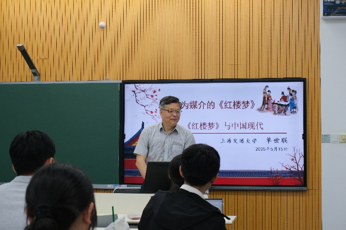 2025年5月15日下午,主题为“作为媒介的‘红学’——《红楼梦》与中国现代”的学术讲座在h动漫 闵行校区第二教学楼110教室举行。本次讲座由上海交通大学特聘教授、文化产业管理系主任单世联主讲,甘莅豪老师主持,三十余名师生线下参与。此次讲座吸引了诸多关心文学、传播的师生参与,现场气氛热烈、互动积极。